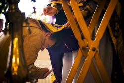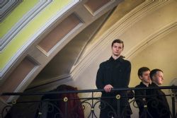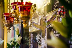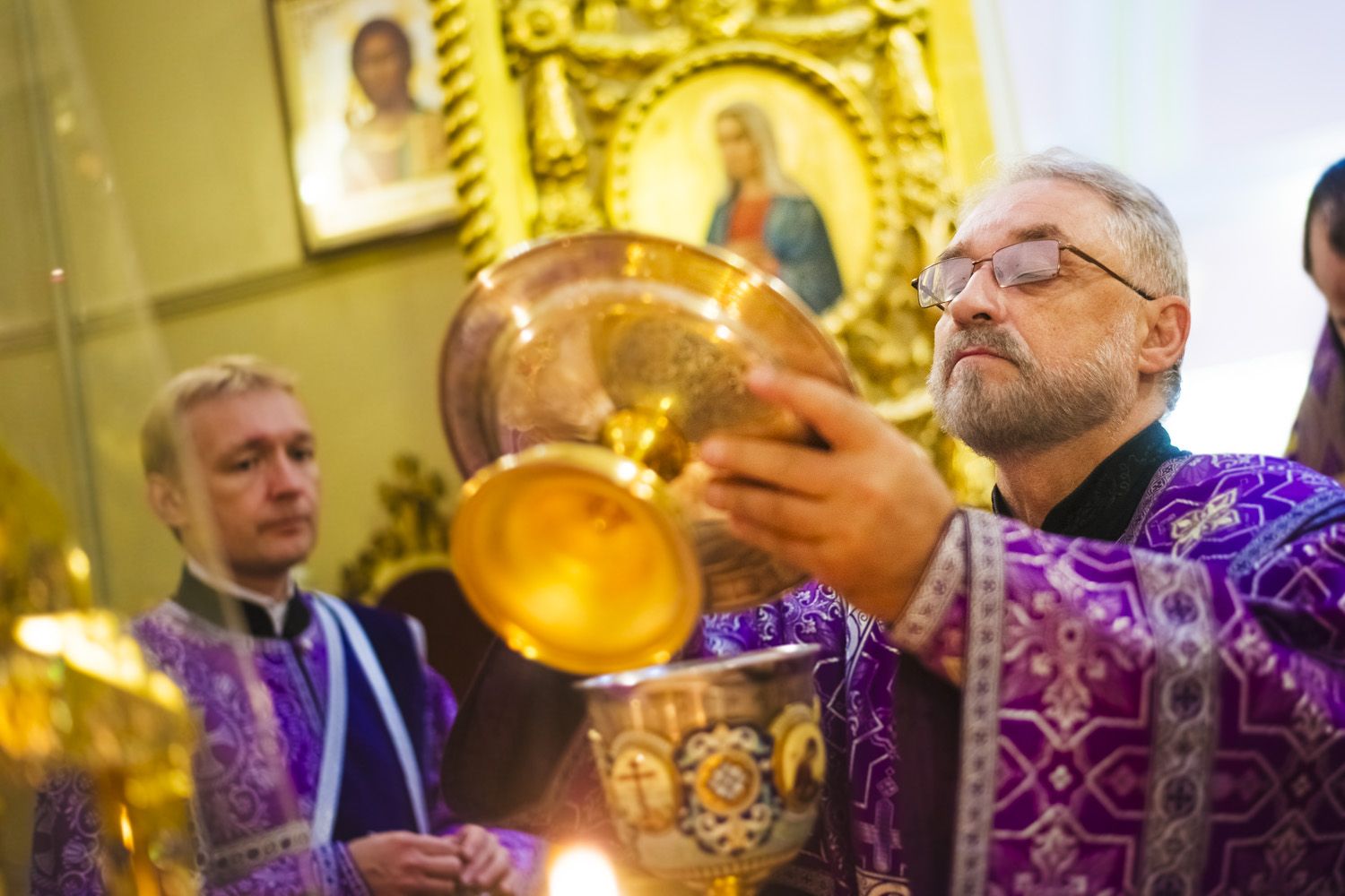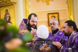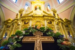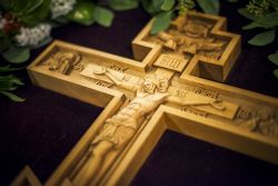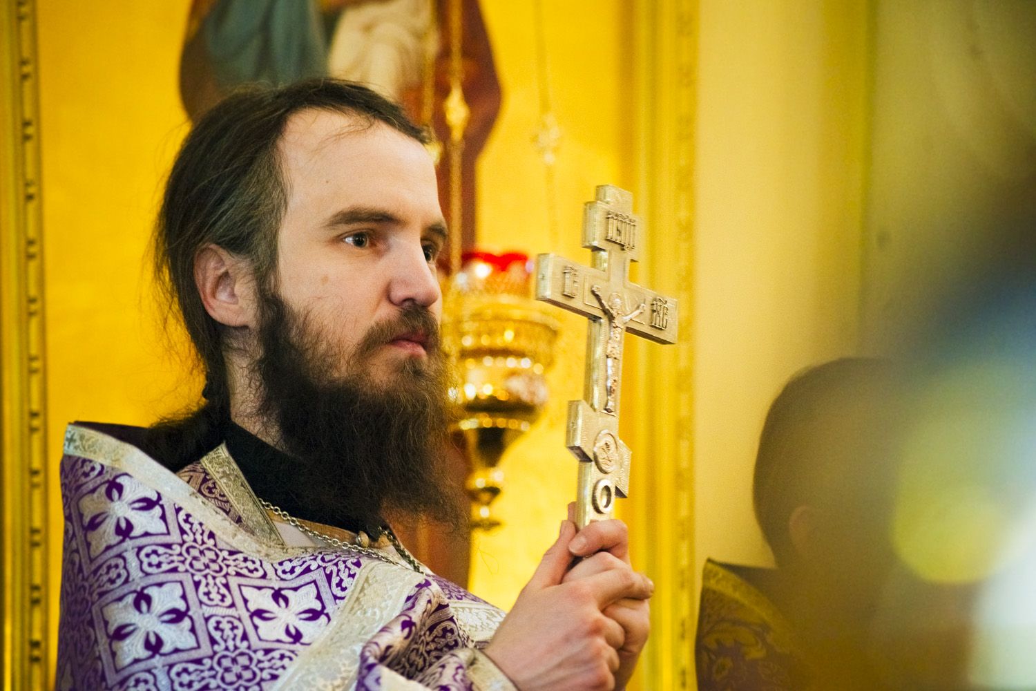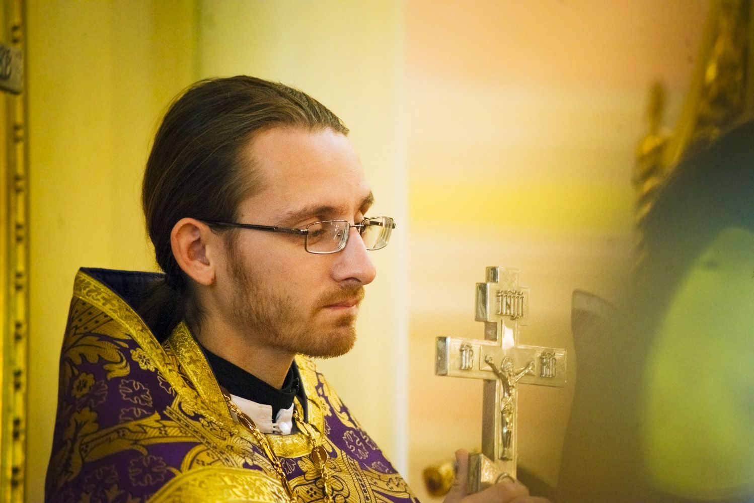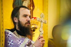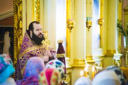 «„А я не желаю хвалиться, разве только крестом Господа нашего Иисуса Христа, которым для меня мир распят, и я для мира“ — это слова святого апостола Павла из Послания к Галатам, которые мы слышали на Литургии. Сегодня Церковь в честь праздника Воздвижения Честного и Животворящего Креста износит из святая святых Крестное Древо. В этот день мы с вами привыкли видеть украшенный Крест и умиротворённое лицо Спасителя, который уже предал Свой Дух Отцу. Но каждый раз, когда мы прикладываемся к распятию и взираем на Спасителя, сжимается ли наше сердце? Стынет ли в наших жилах кровь от воспоминаний о том, что случилось больше двух тысяч лет тому назад? Осознаём ли мы, какая сила сокрыта в этом Кресте? Иуда предал, Петр отрёкся — Господа оставили все. Тот, Кого ждали не одно тысячелетие, изучая книги пророков, оказался ненужным, и Ему нашлось место только на Кресте. Каждый ли раз, когда мы прикладываемся к святому древу, запечатлевается у нас в сердце крестное знамя? И думаем ли мы о своём отношении к Господу, пришедшего спасти каждого из всех здесь стоящих. Ведь все мы подобно Иуде, Петру и апостолам, уснувшим в Гефсиманском саду, проводим свою жизнь в дремоте, лености и страхе. Однако когда нас сильно прижмёт, мы всё равно обращаемся к Кресту, и получаем исходящую от него благодать. Не просто так святая Церковь установила это празднование, не просто так она износит Крестное Древо. К сожалению, наши сердца со временем не становятся мягче и податливей. Наоборот, они костенеют в грехах. В нашей жизни много нестроений, но нужно помнить, что в этот мир мы пришли не для того, чтобы накопить богатств и создать себе комфорт. Каждый из нас рано или поздно придёт на свою Голгофу, и мы должны к этому готовиться. Мы должны просить, стоя у Креста, не здоровья, потому что мы всё равно его не бережём. Мы должны просить любви, которая поможет достичь святой Голгофы, а также твёрдой веры и надежды. Каждое утро, читая Символ веры и произнося «распятого же за ны», мы должны содрогаться и вспоминать о святой Голгофе. В этом случае день будет проходить по-другому — не в праздности и лицеприятии. Нужно уподобиться апостолу Петру, который каждый раз, услышав пение петуха, вспоминал о своём предательстве. А кто из нас может сказать, что он не предавал? Все мы предаем Господа своими грехами, поэтому нам надо молиться, каяться, исправляться и надеяться на Божие милосердие. Братья и сестры, всем вам желаю помощи Божией в несении своего креста. Аминь».