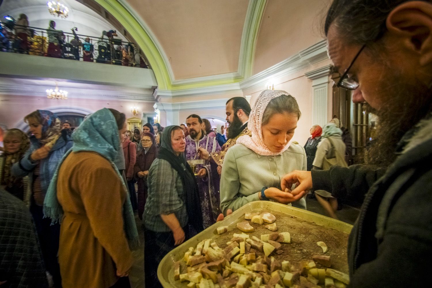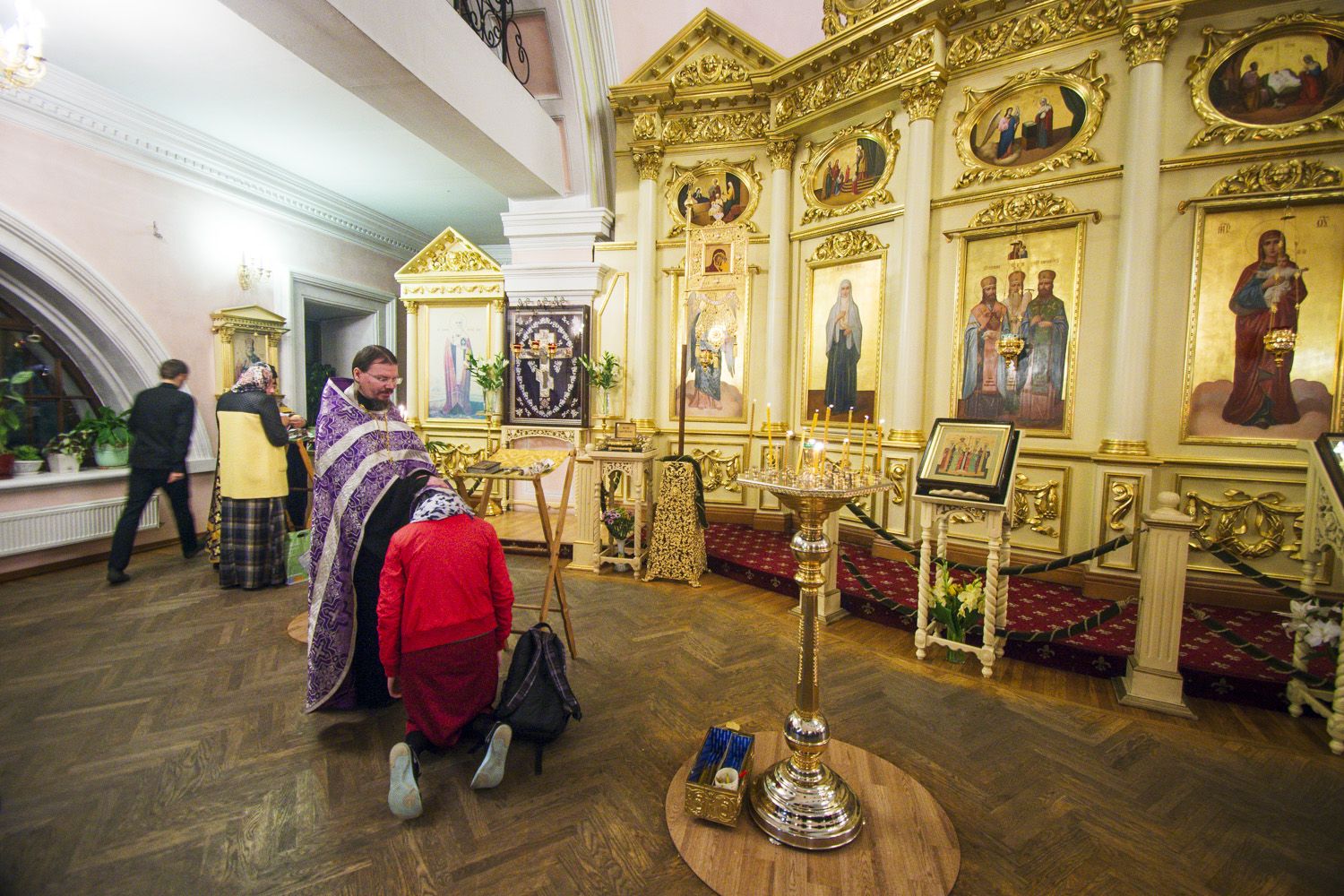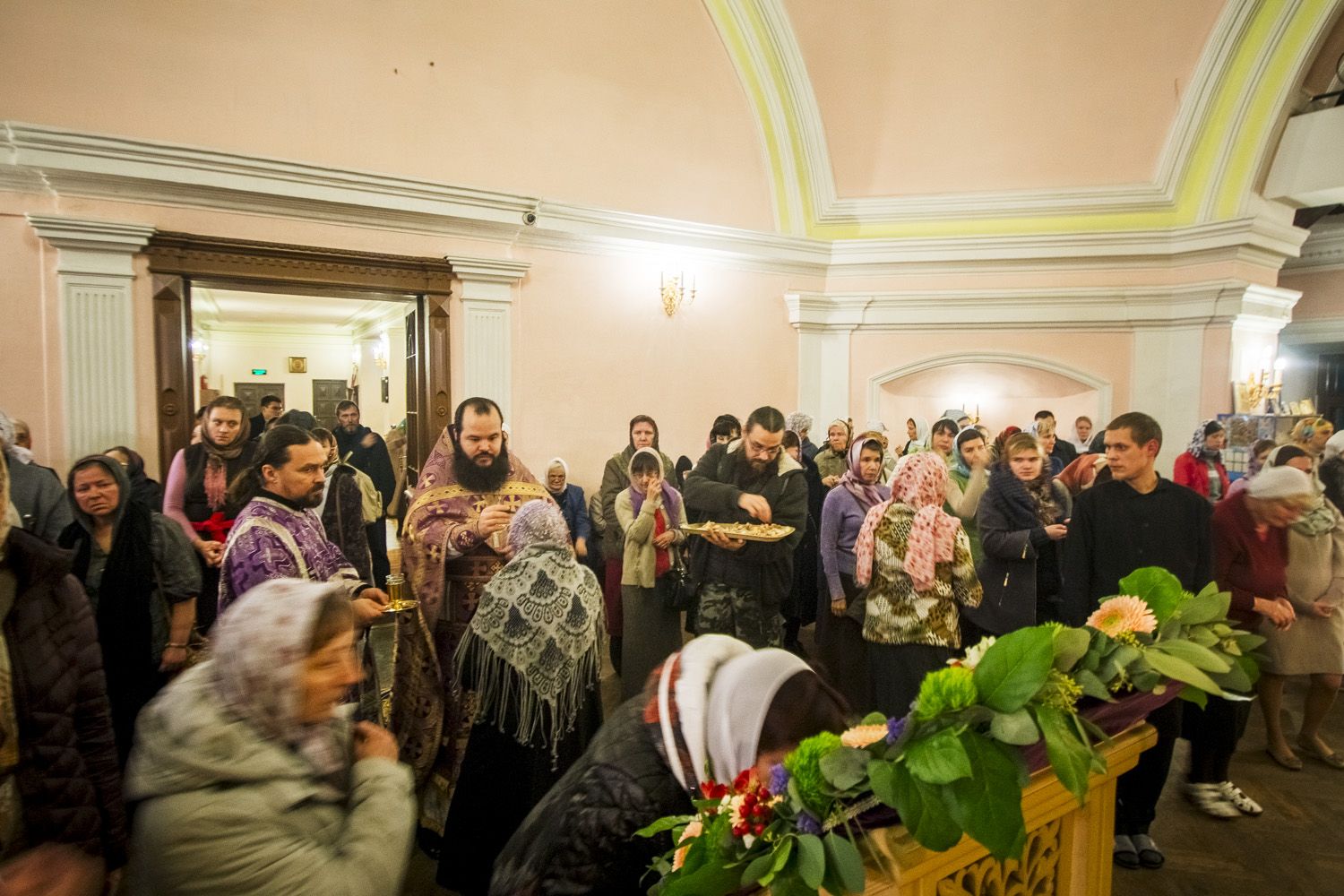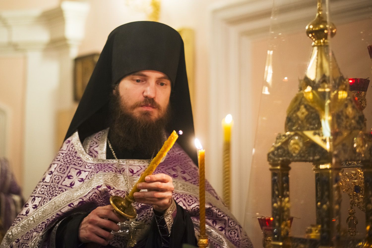 На всенощном бдении был совершён чин выноса Креста на середину храма для поклонения верующим, который зримо и духовно сближает современных христиан с тем днём, когда Крест Господень после трёх столетий забвения был обнаружен равноапостольной царицей Еленой и явлен народу.