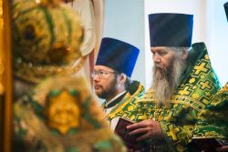 Богослужебные песнопения исполнил смешанный хор под управлением Александра Федотова.