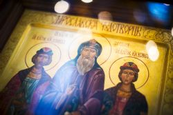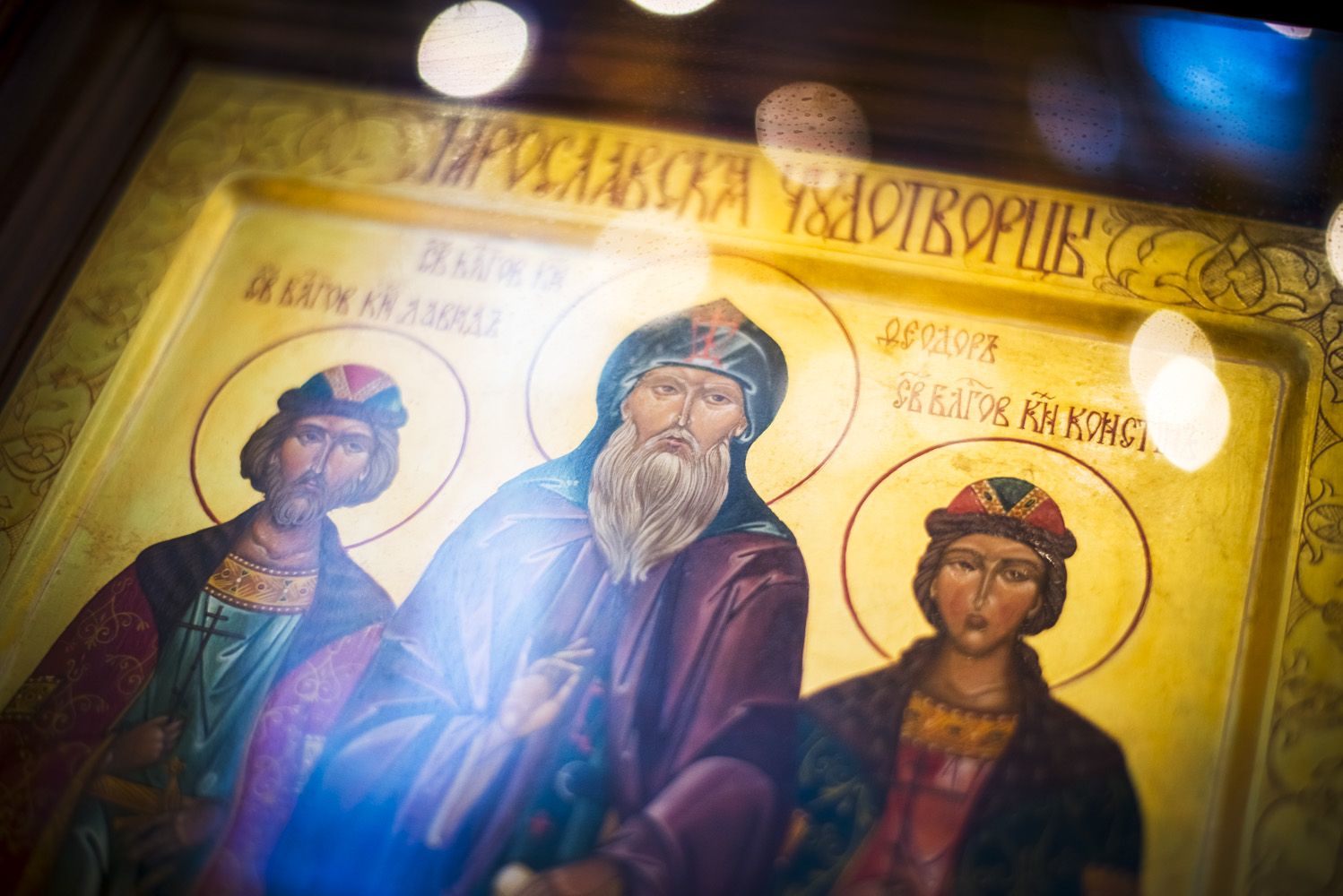 По заамвонной молитве священнослужители совершили славление святым покровителям храма. Правящий архиерей прочитал молитву благоверным Ярославским чудотворцам.