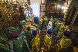 Завершая праздничное богослужение, архипастырь поздравил священнослужителей и верующих с престольным праздником: «Этот древний храм под их покровительством всегда был и остается великой святыней. Многие души пришли к Богу через этот храм и покровительство святых угодников Божиих», — отметил владыка Феофан.