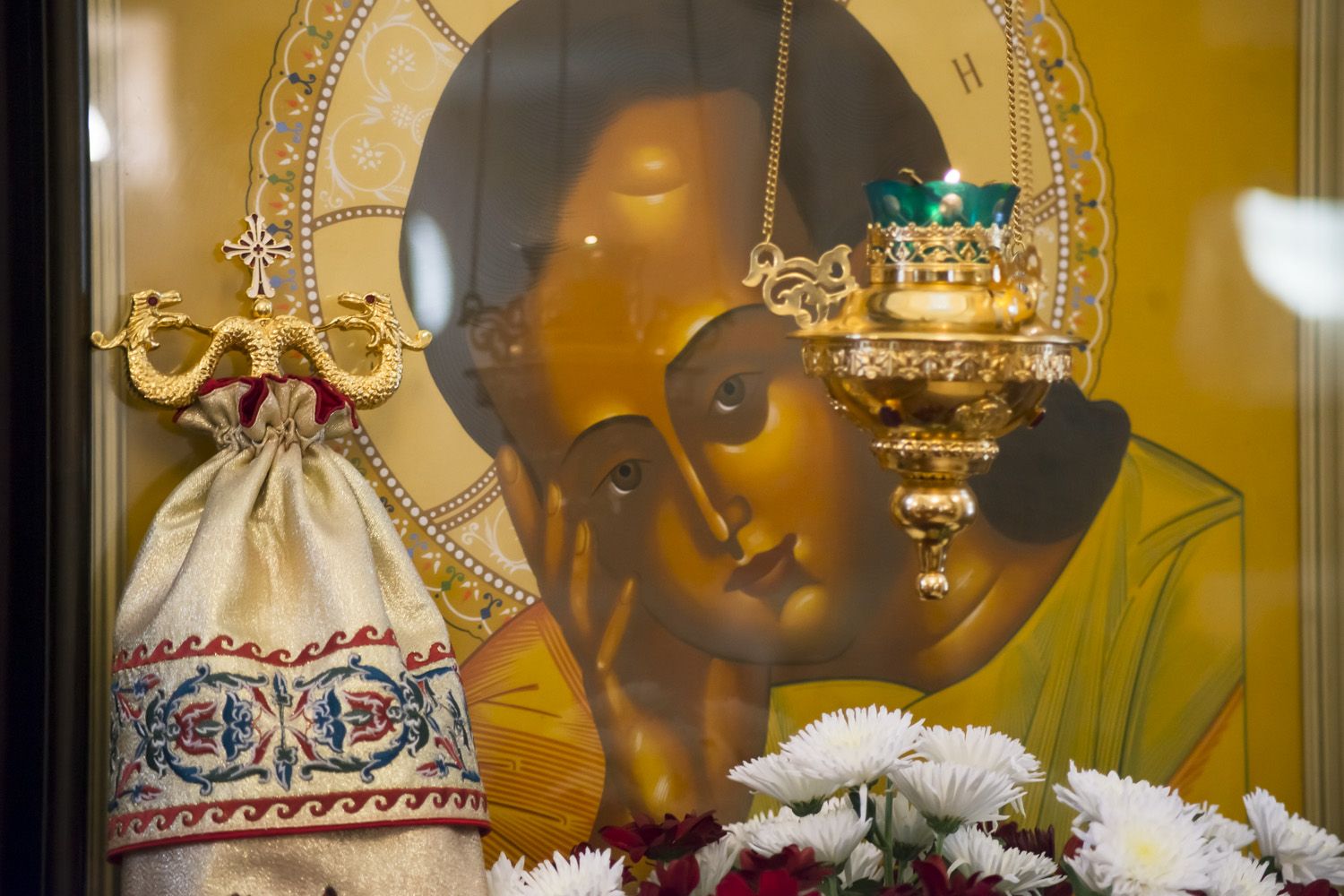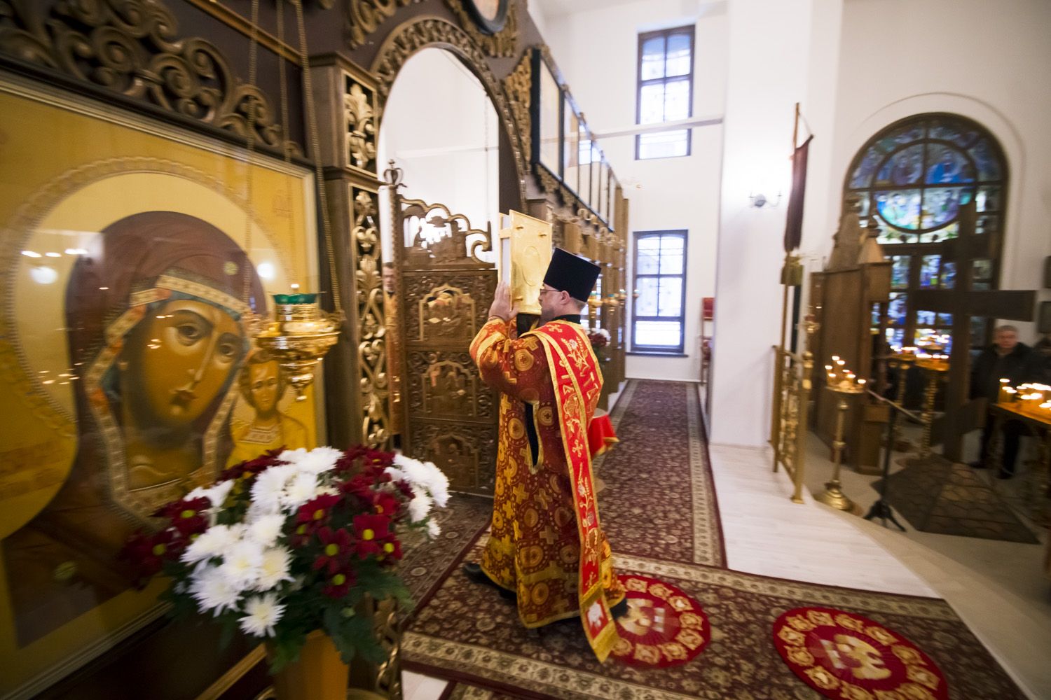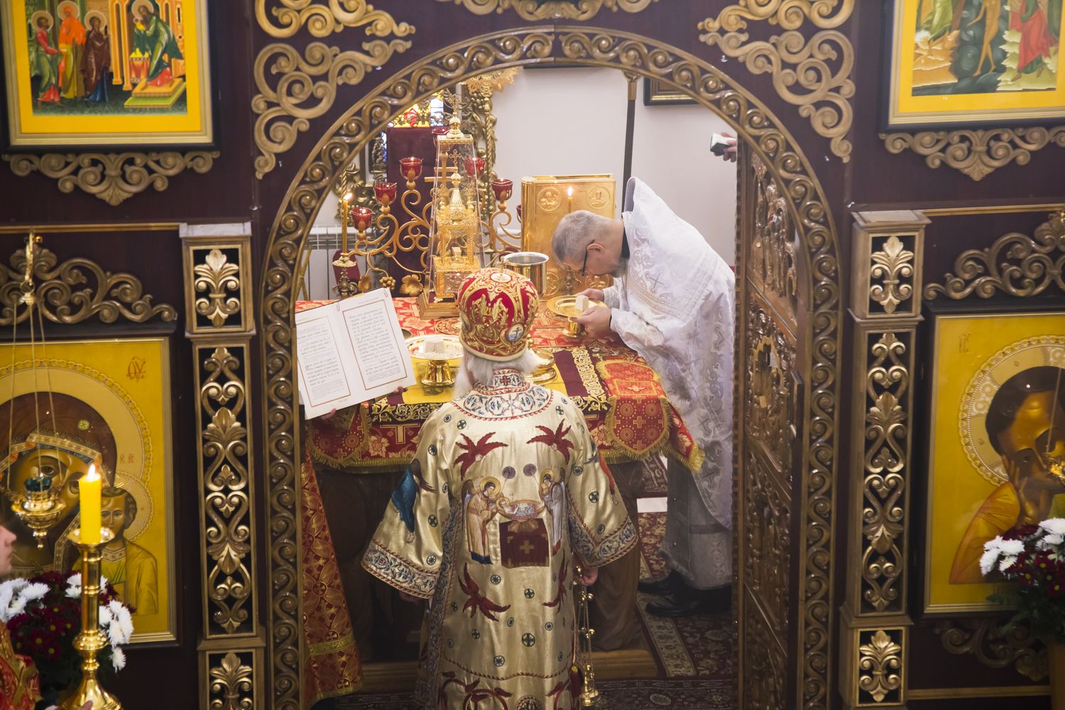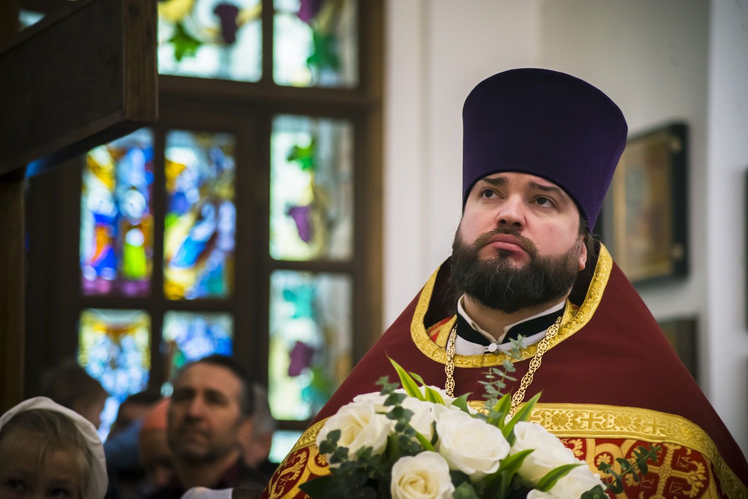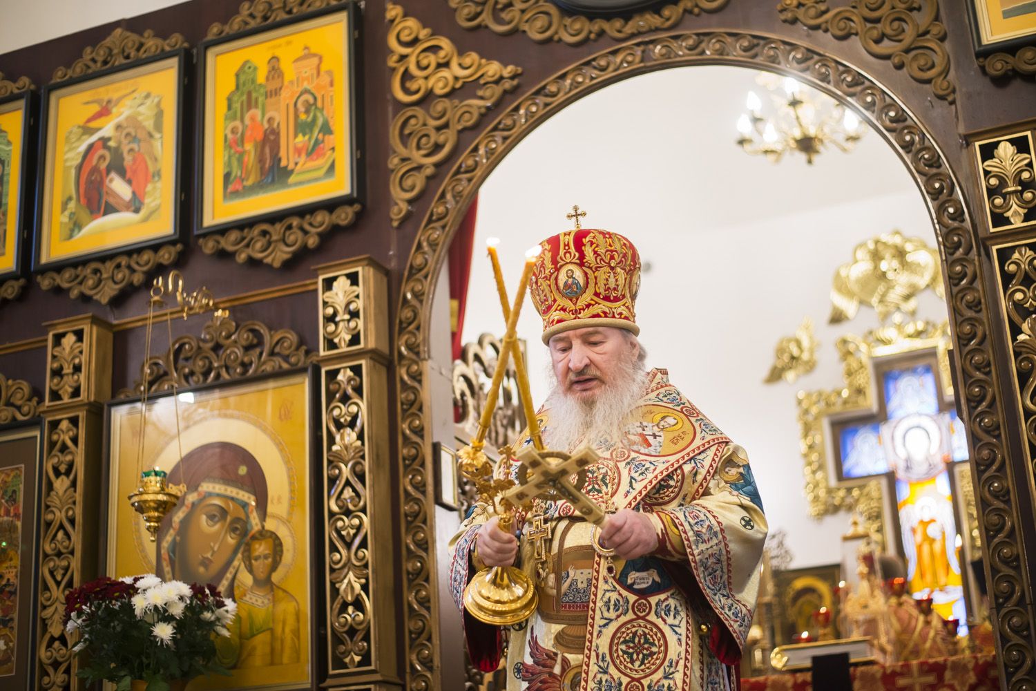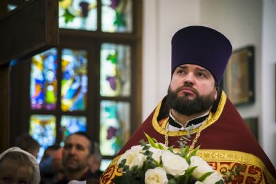 Настоятель храма протоиерей Андрей Лосык поблагодарил правящего архиерея за радость совместной молитвы в день престольного праздника и преподнес Его Высокопреосвященству букет цветов.
