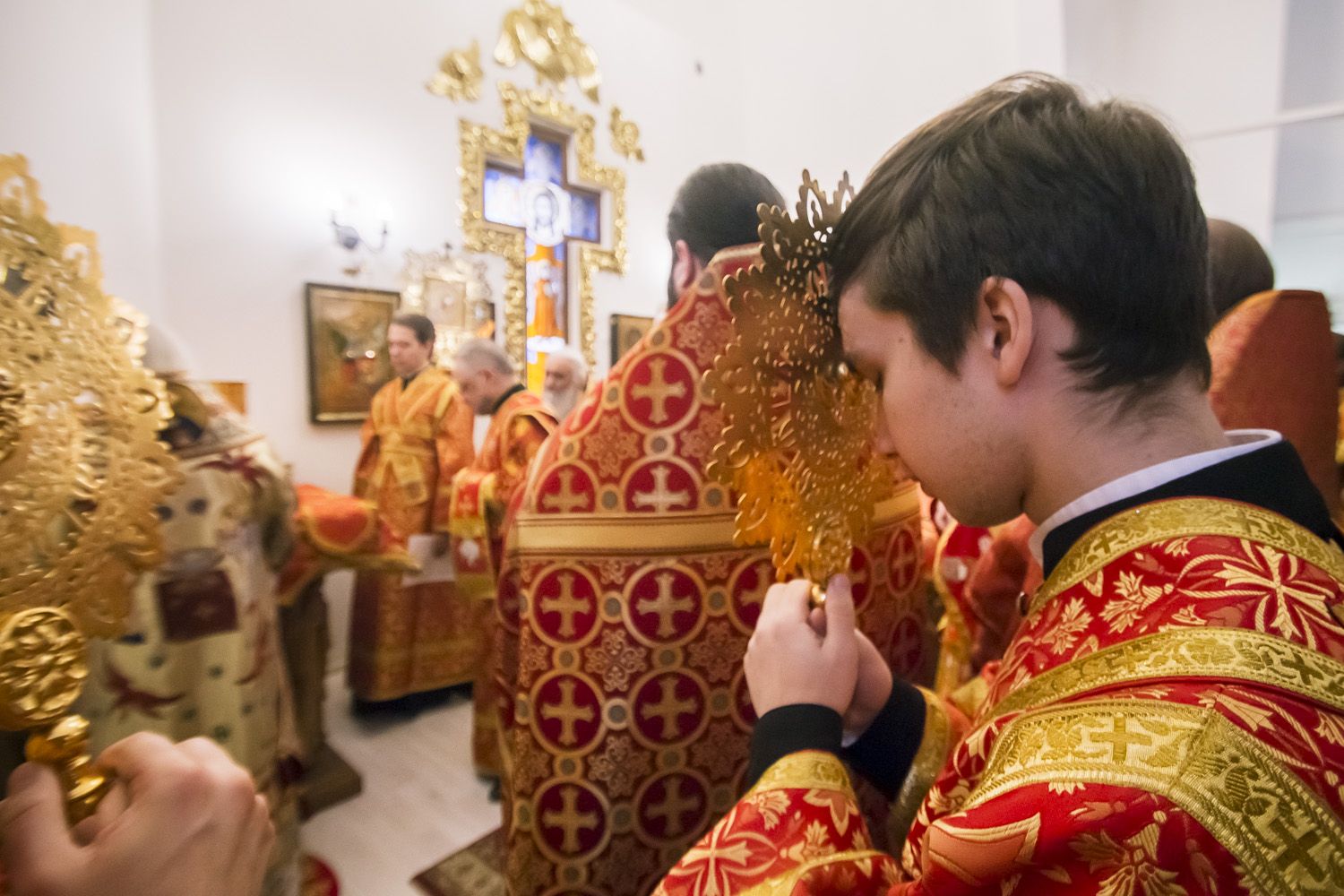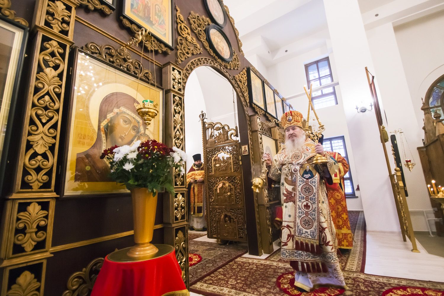 За богослужением престольного праздника главе Татарстанской митрополии сослужили настоятель храма в честь Тихвинской иконы Божией Матери города Казани протоиерей Павел Павлов, секретарь Казанского епархиального управления протоиерей Владимир Самойленко, настоятель храма Новомучеников и исповедников Церкви Русской протоиерей Андрей Лосык, наместник Казанско-Богородицкого мужского монастыря игумен Марк (Виленский), настоятель Введенского Кизического мужского монастыря города Казани игумен Пимен (Ивентьев), настоятель Богоявленского собора города Казани протоиерей Алексий Державин, настоятель Пятницкой церкви города Казани иерей Алексий Обрывко, настоятель храма Казанской иконы Божией Матери города Казани (поселок Царицыно) иерей Евгений Гаврилкин.