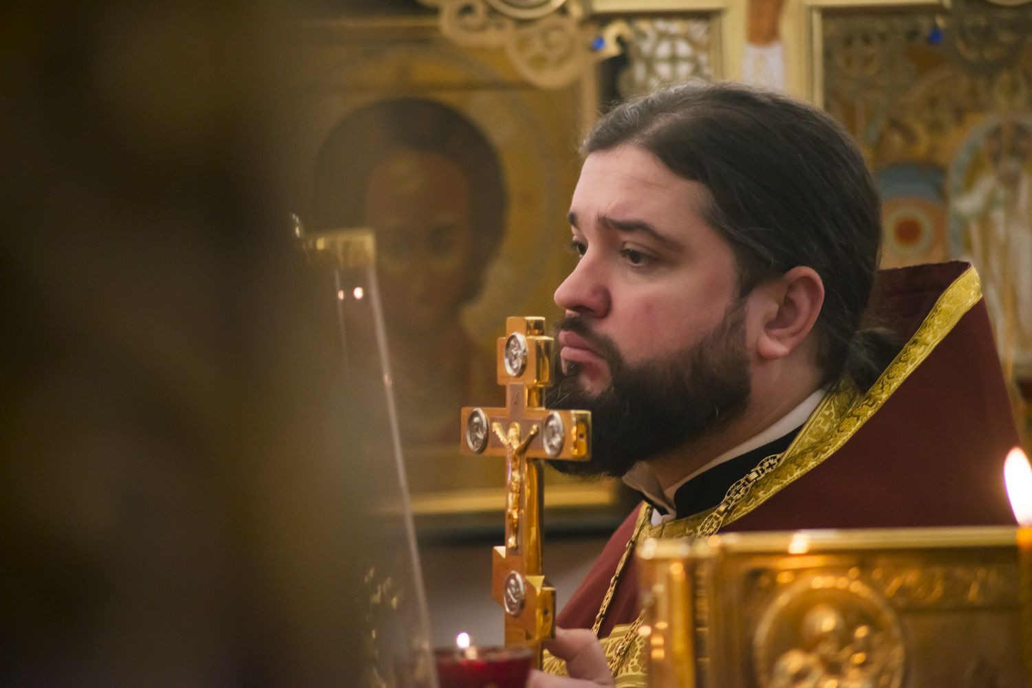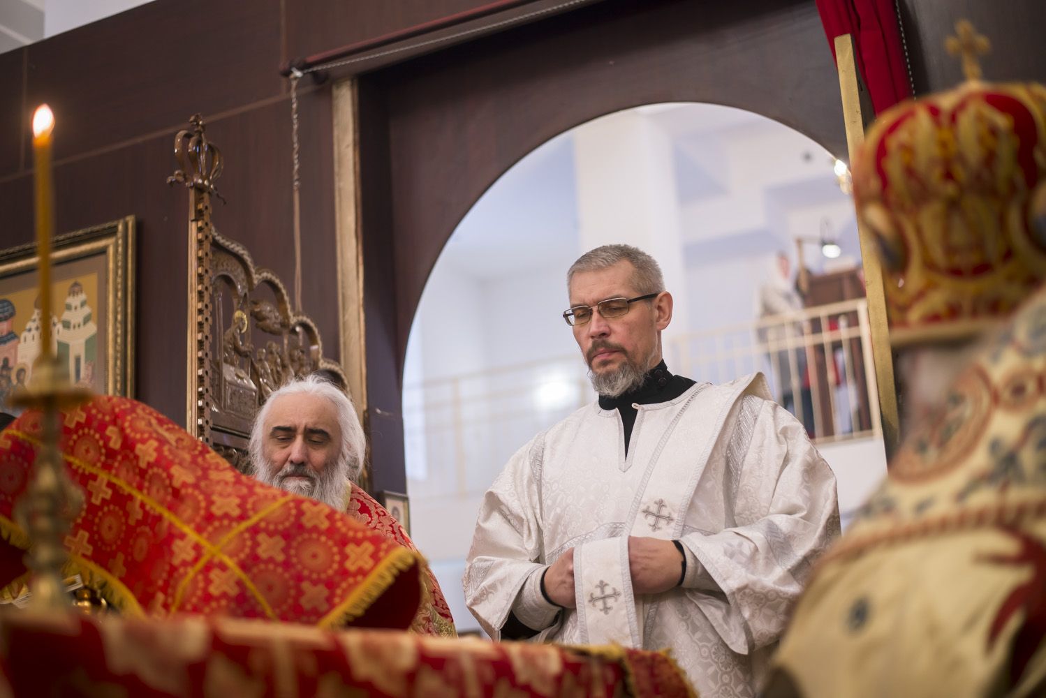 За Литургией правящий архиерей совершил хиротонию во пресвитера клирика Никольского храма села Верхний Услон диакона Сергия Вохмянина.