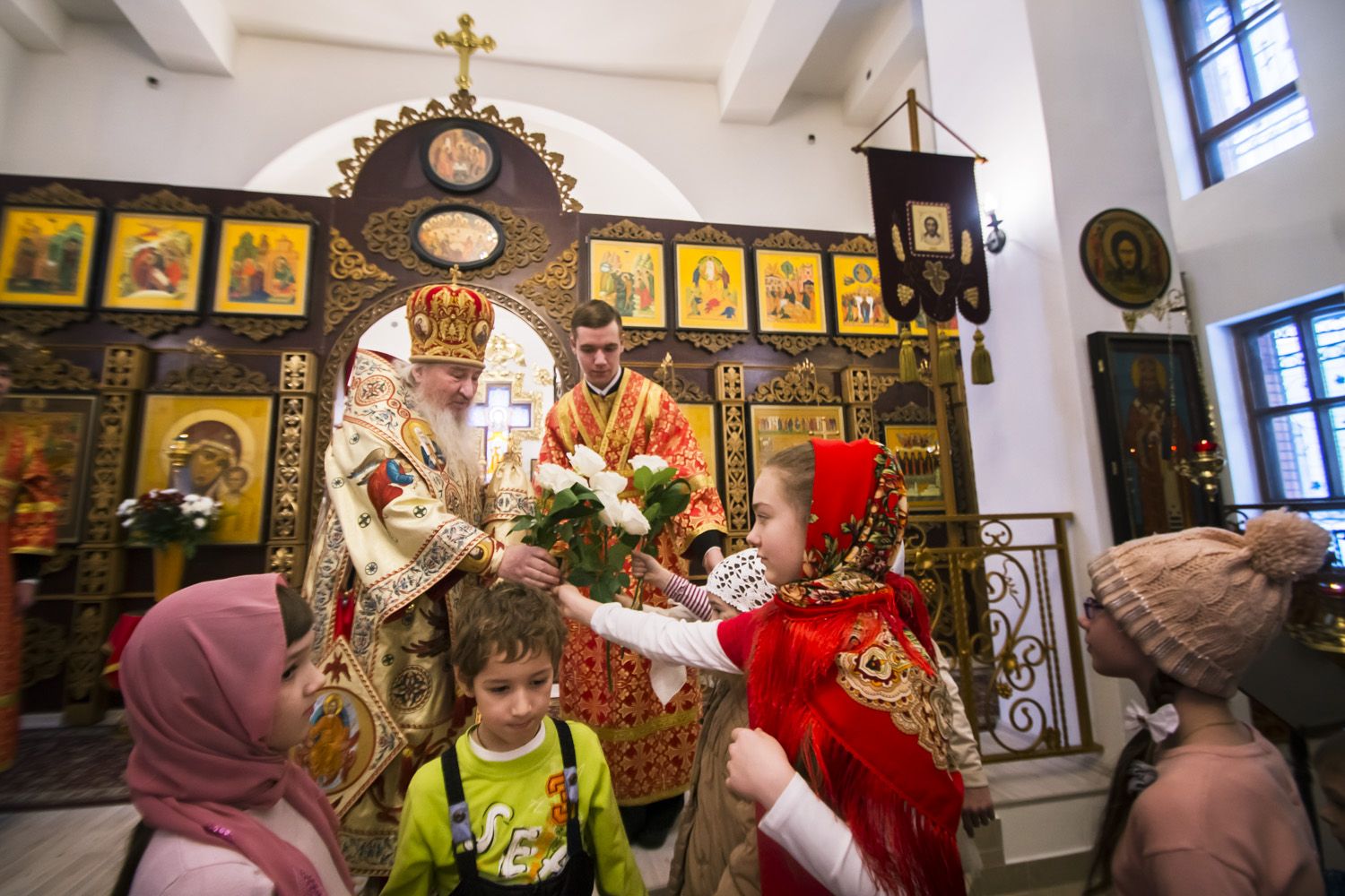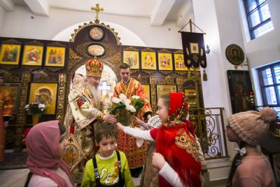 В завершение службы владыка Феофан благословил молящихся и раздал сладкие гостинцы присутствовавшим в храме детям.