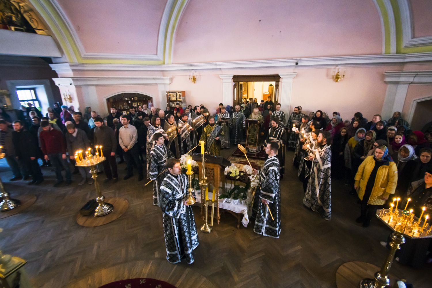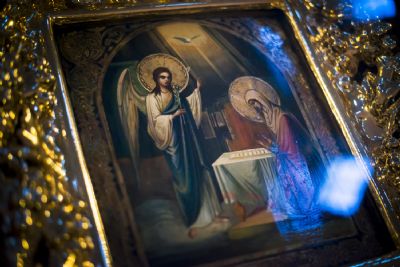 На утрени была прочитана 17-я кафизма с похвалами. По случаю праздника Благовещения Богородицы был совершен полиелей.