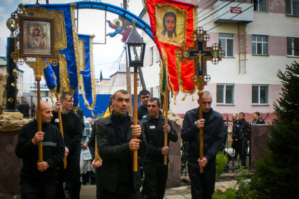 После крестного хода состоялось чаепитие, в ходе которого заключенные пообщались со священнослужителями. Отец Святослав посетил мастерскую резчиков по дереву, где ознакомился с их работами, в числе которых были резные иконы и церковная утварь.