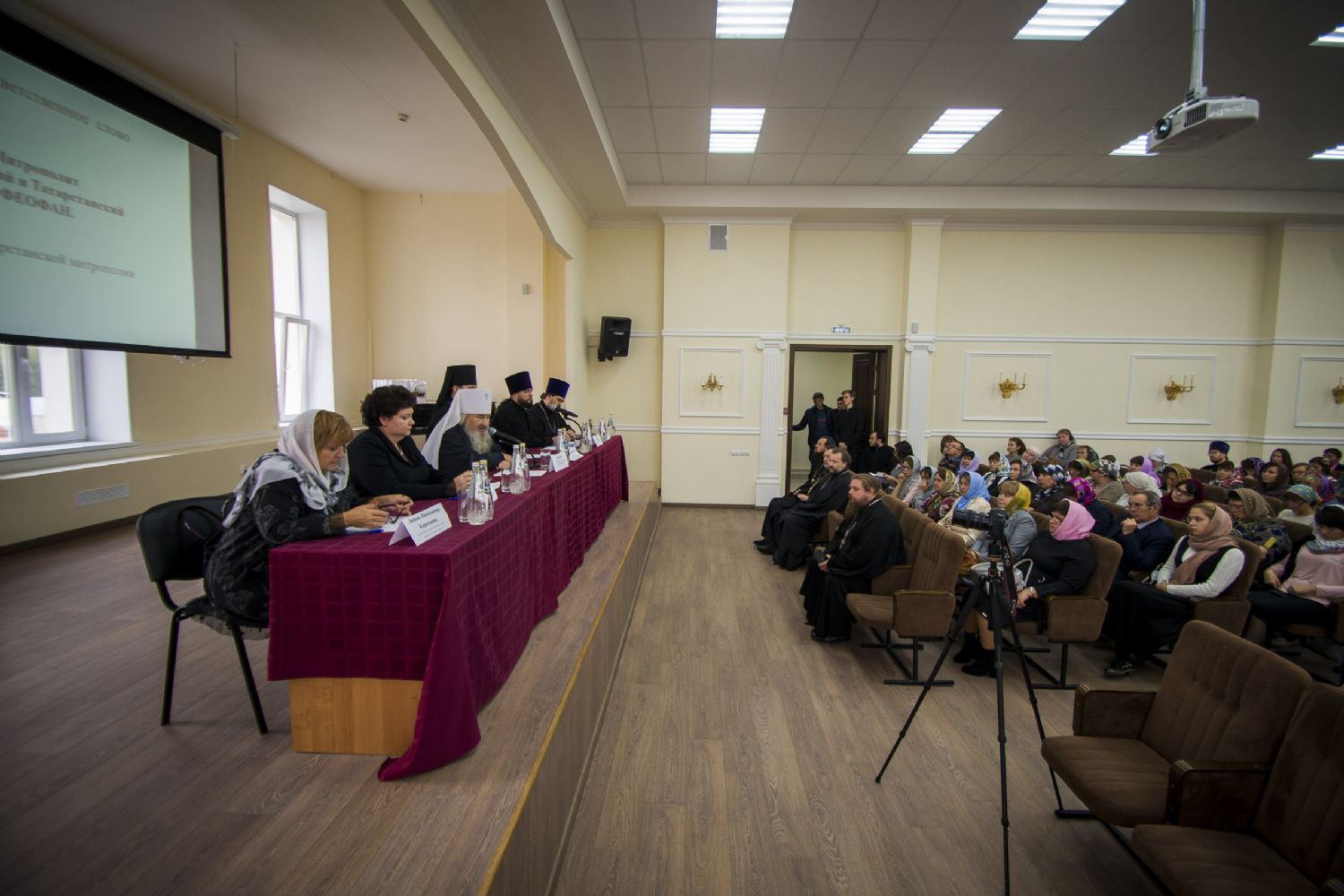 Пленарное заседание, организованное в конференц-зале духовной школы, возглавили: митрополит Казанский и Татарстанский Феофан; первый проректор КазПДС игумен Евфимий (Моисеев); руководитель отдела религиозного образования и катехизации Казанской епархии протоиерей Андрей Лосык; секретарь Ученого совета КазПДС протоиерей Алексий Колчерин; заместитель начальника отдела общего образования и итоговой аттестации обучающихся Министерства образования и науки РТ Татьяна Лустина; методист информационно-методического отдела Управления образования города Казани Любовь Карпунина.