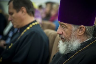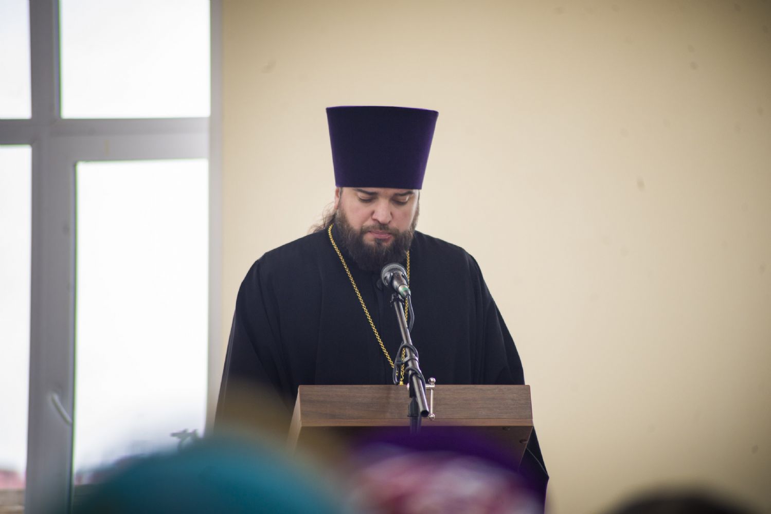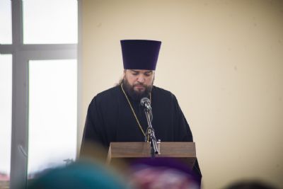Протоиерей Андрей Лосык огласил приветственное слово председателя Синодального отдела религиозного образования и катехизации митрополита Ростовского и Новочеркасского Меркурия.