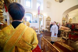 Богослужебные песнопения исполнил архиерейский хор под управлением Дениса Рогова.