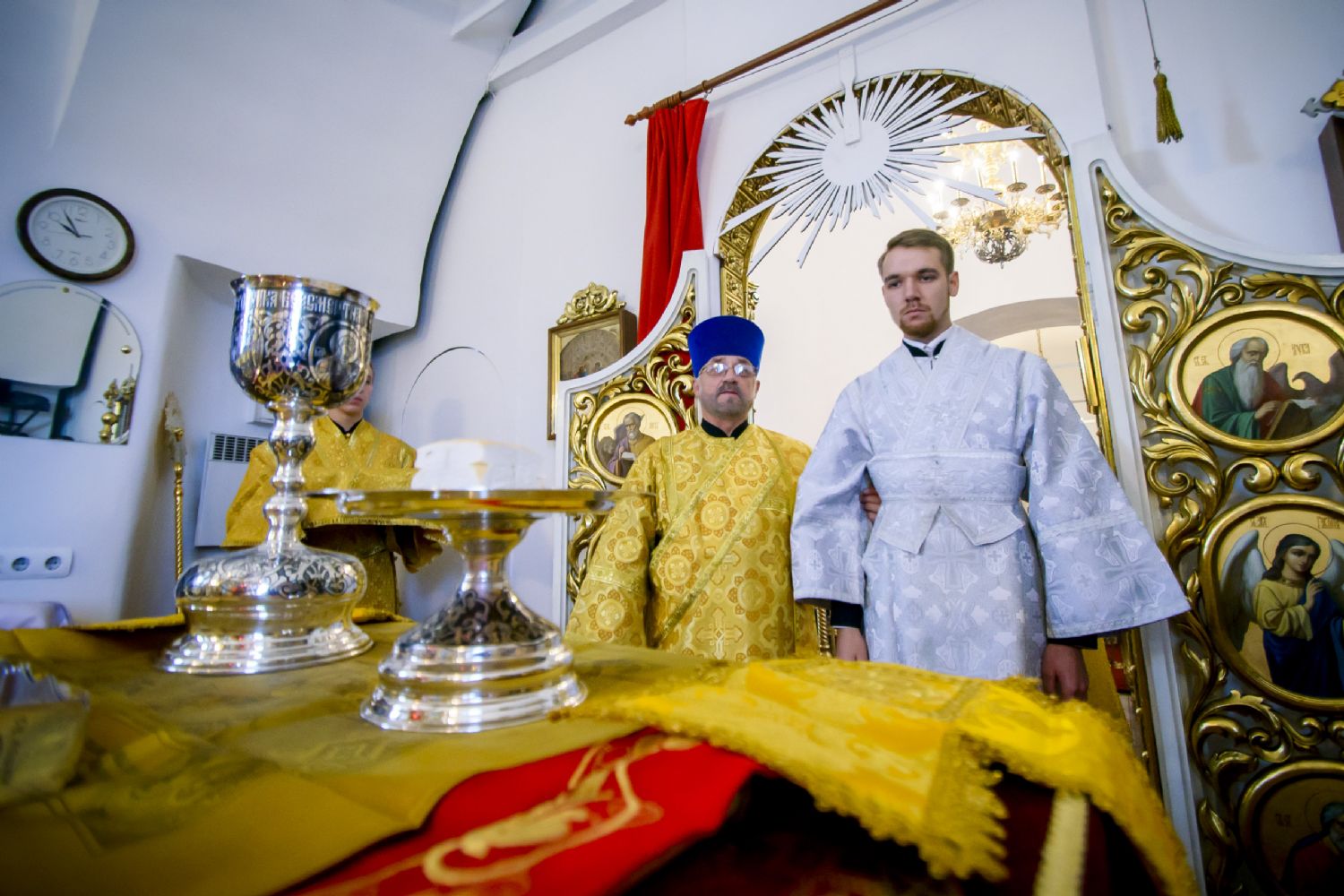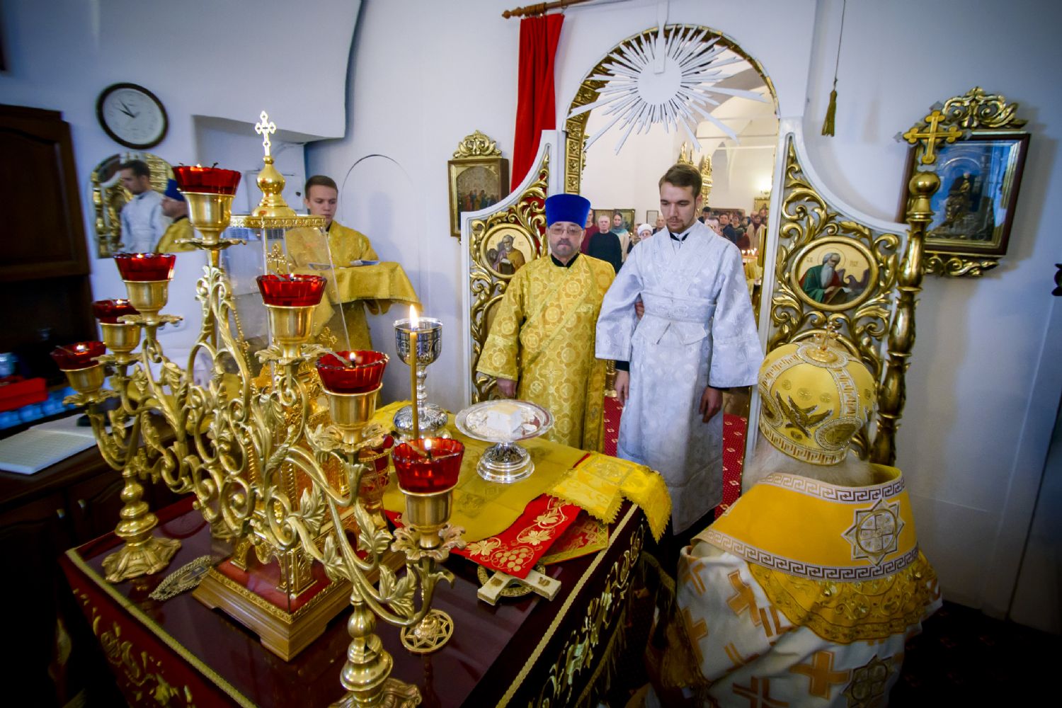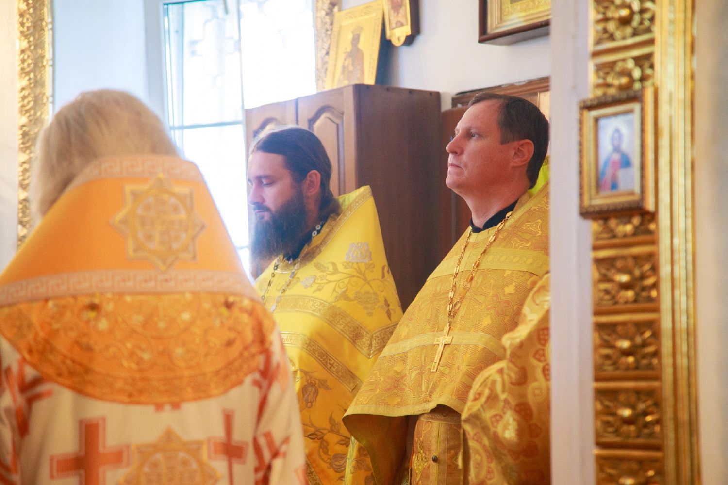 За Божественной литургией архипастырю сослужили настоятель Ильинского храма протоиерей Константин Люкшин, первый проректор Казанской православной духовной семинарии игумен Евфимий (Моисеев), наместник Раифского Богородицкого мужского монастыря игумен Гавриил (Рожнов), настоятель Введенского Кизического мужского монастыря города Казани игумен Пимен (Ивентьев), благочинный Зеленодольского округа протоиерей Святослав Мирганиев.