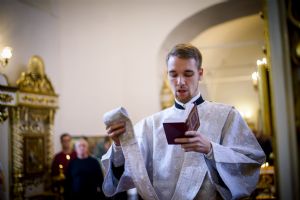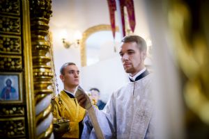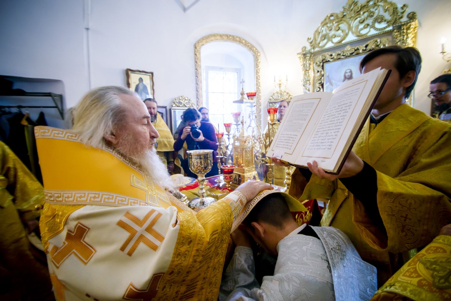 За Литургией глава митрополии совершил диаконскую хиротонию учащегося I курса магистратуры КазДС Александра Миронова.