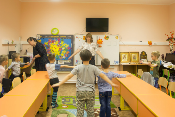 После урока, за чаепитием, педагоги поделились опытом работы с малышами, а гости задали вопросы, касающиеся организации учебного процесса, а также обсудили особенности преподавания предметов в воскресной школе и ознакомились с различными пособиями, используемыми на занятиях.