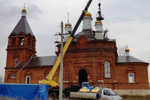 23 октября на храм святых первоверховных апостолов Петра и Павла в селе Умяк Елабужского района РТ установили четыре купола.