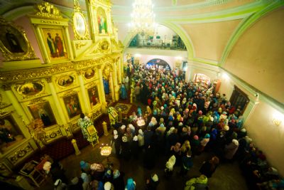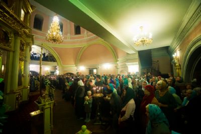 За праздничным вечерним богослужением молились многочисленные прихожане храмов Казани и паломники.
