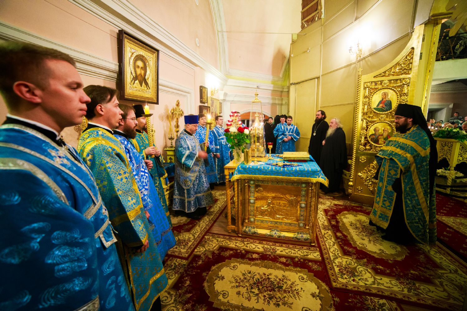 Всенощное бдение возглавили митрополит Казанский и Татарстанский Феофан, ректор Московской духовной академии архиепископ Верейский Амвросий, архиепископ Пятигорский и Черкесский Феофилакт, епископ Магнитогорский и Верхнеуральский Иннокентий.