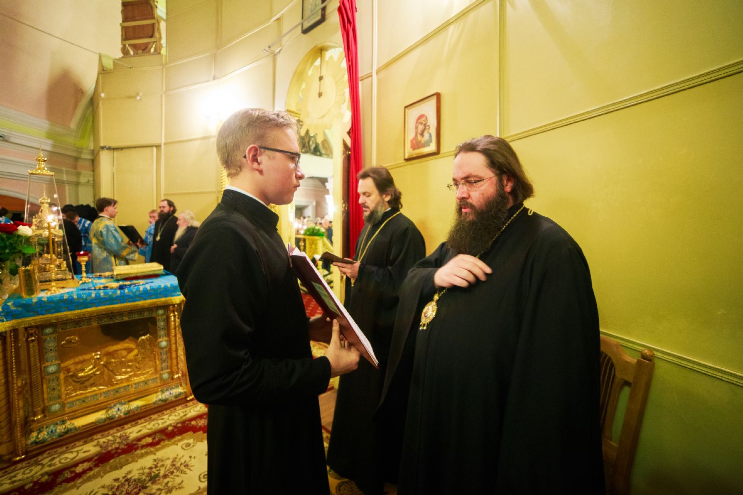 Песнопения исполняли мужской хор под управлением Дениса Рогова и смешанный — под управлением монахини Амвросии (Кочережкиной). Чин литии возглавил владыка ректор МДА. Полиелей архиереями и духовенством был совершен перед чтимым списком Казанской иконы Богородицы. Канон на утрене прочитали архиепископ Феофилакт и епископ Иннокентий.