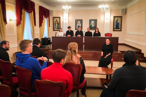 Регент молодежного хора Екатерина Батаева рассказала о том, как проводится набор в хор, и о том, как работать с молодежью, желающей петь, но не имеющей певческих навыков. Руководитель театрального коллектива режиссер Алена Атарбаева поделилась опытом создания приходской театральной студии, отметив, что многие участники этого коллектива стали друзьями. Рассказывая о репетициях, Алена раскрыла некоторые режиссерские секреты.