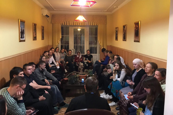 После богослужения состоялась встреча с руководителем молодежного отдела Самарской епархии иеромонахом Герасимом (Вертеем). Отец Герасим рассказал о миссионерстве в молодежной среде и об особенностях молодежного служения.