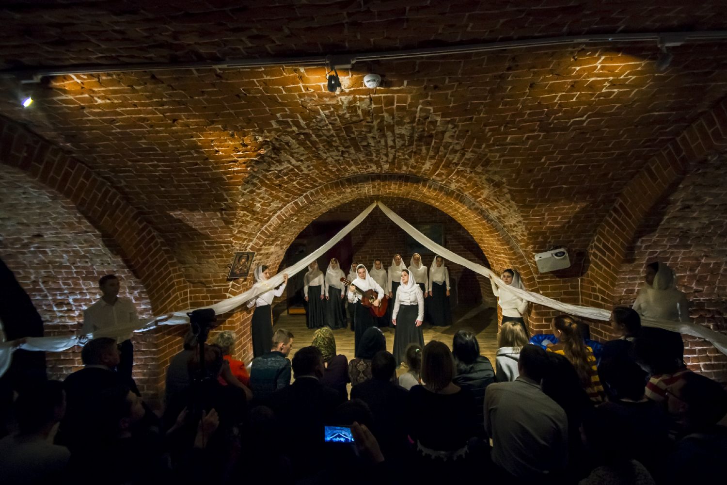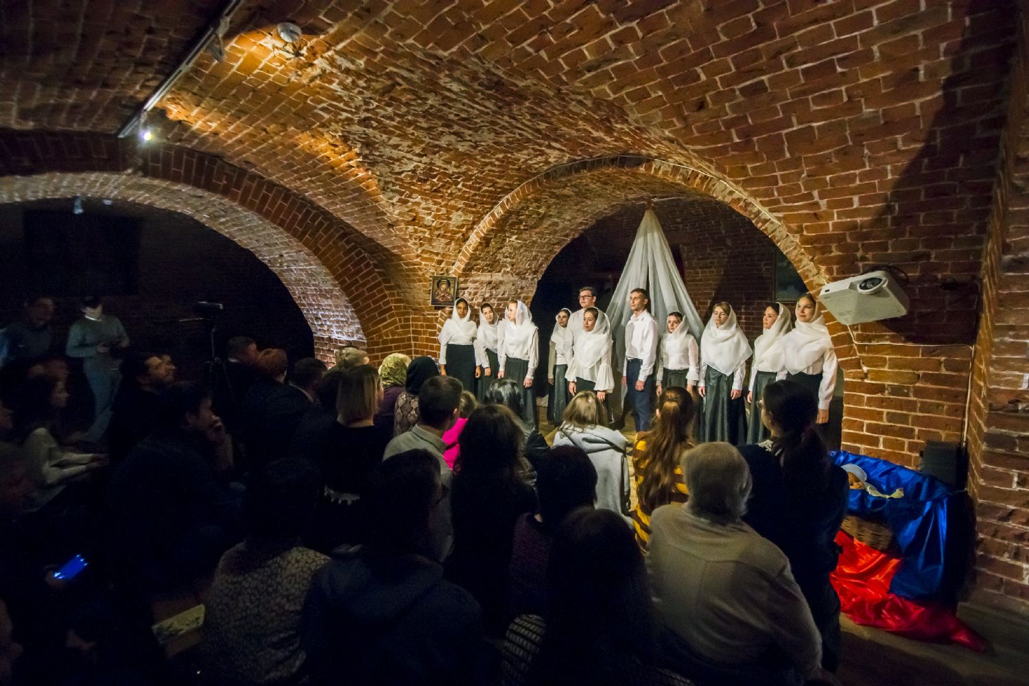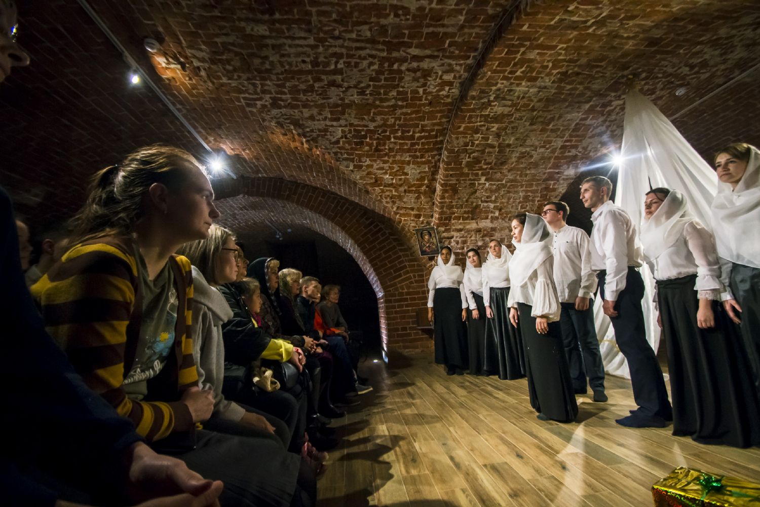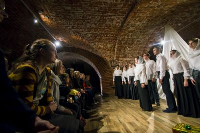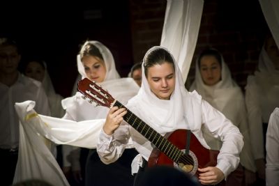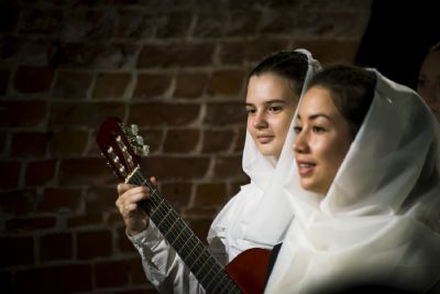 9 ноября в казанском молодежном пространстве «Азбука», расположенном в цокольном этаже храма преподобного Сергия Радонежского (ул. Япеева, 2), театральная студия молодежного отдела Казанской епархии представила новую литературно-музыкальную постановку «Под Покровом Богородицы».