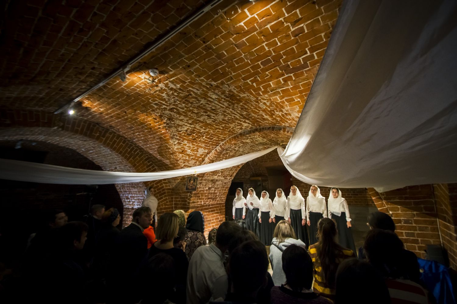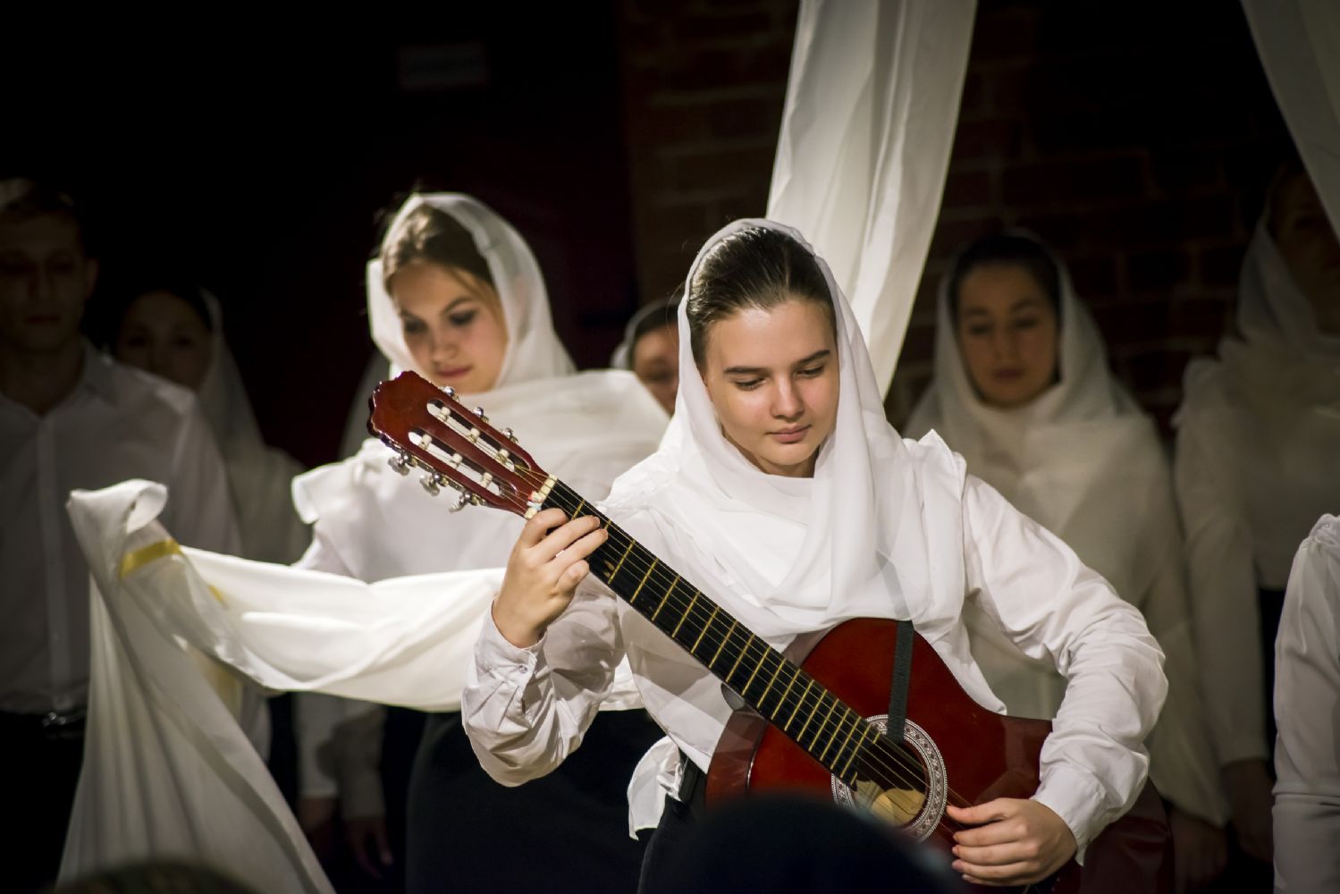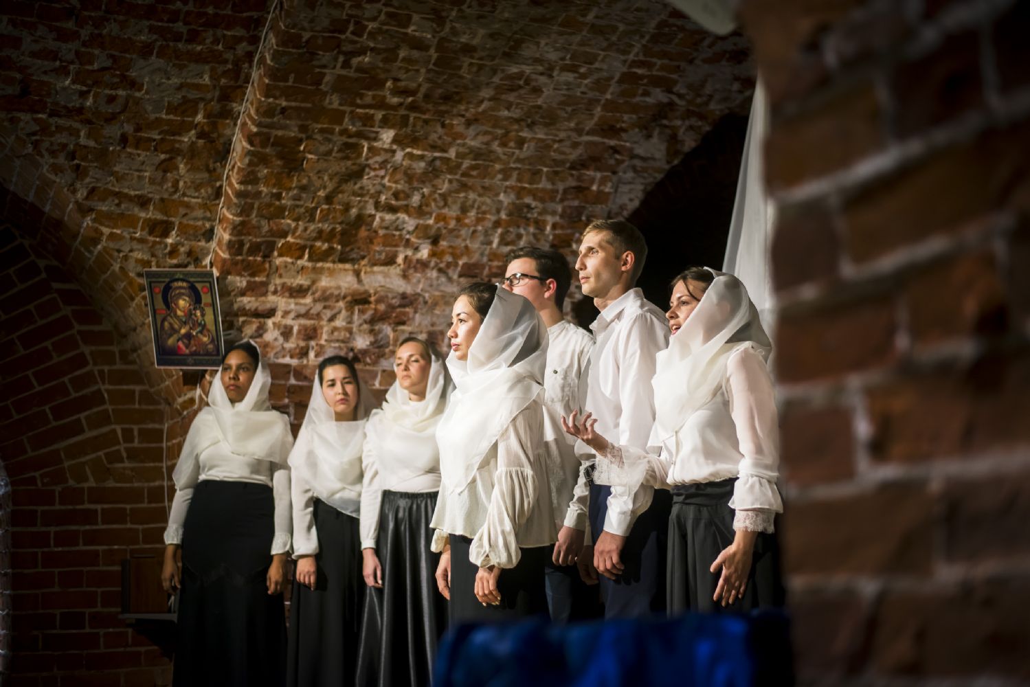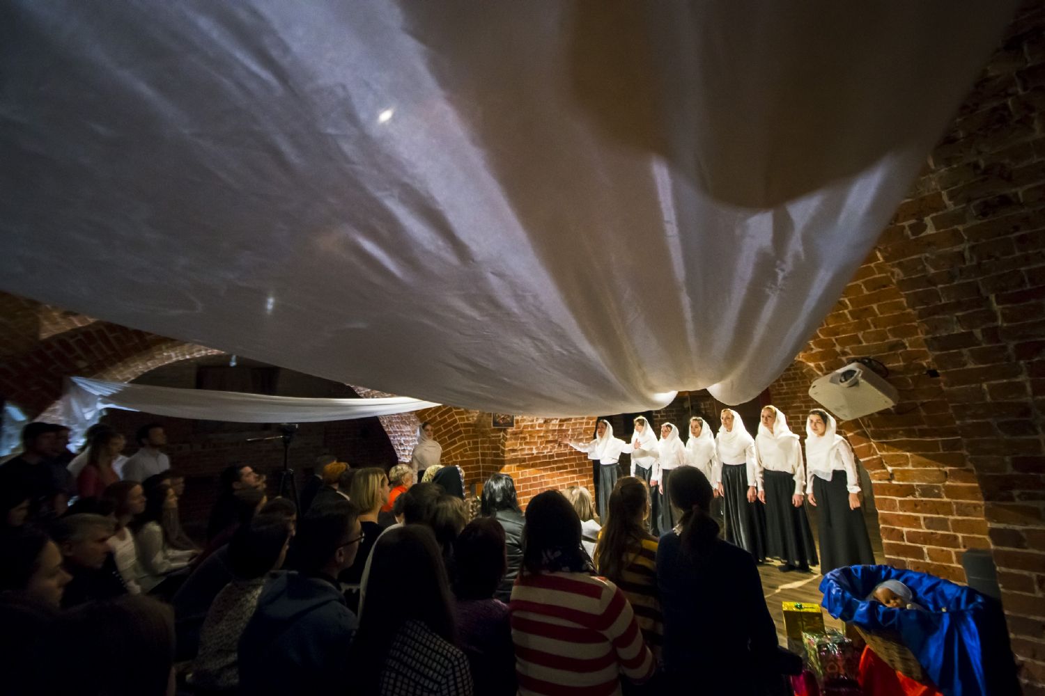 9 ноября в казанском молодежном пространстве «Азбука», расположенном в цокольном этаже храма преподобного Сергия Радонежского (ул. Япеева, 2), театральная студия молодежного отдела Казанской епархии представила новую литературно-музыкальную постановку «Под Покровом Богородицы».