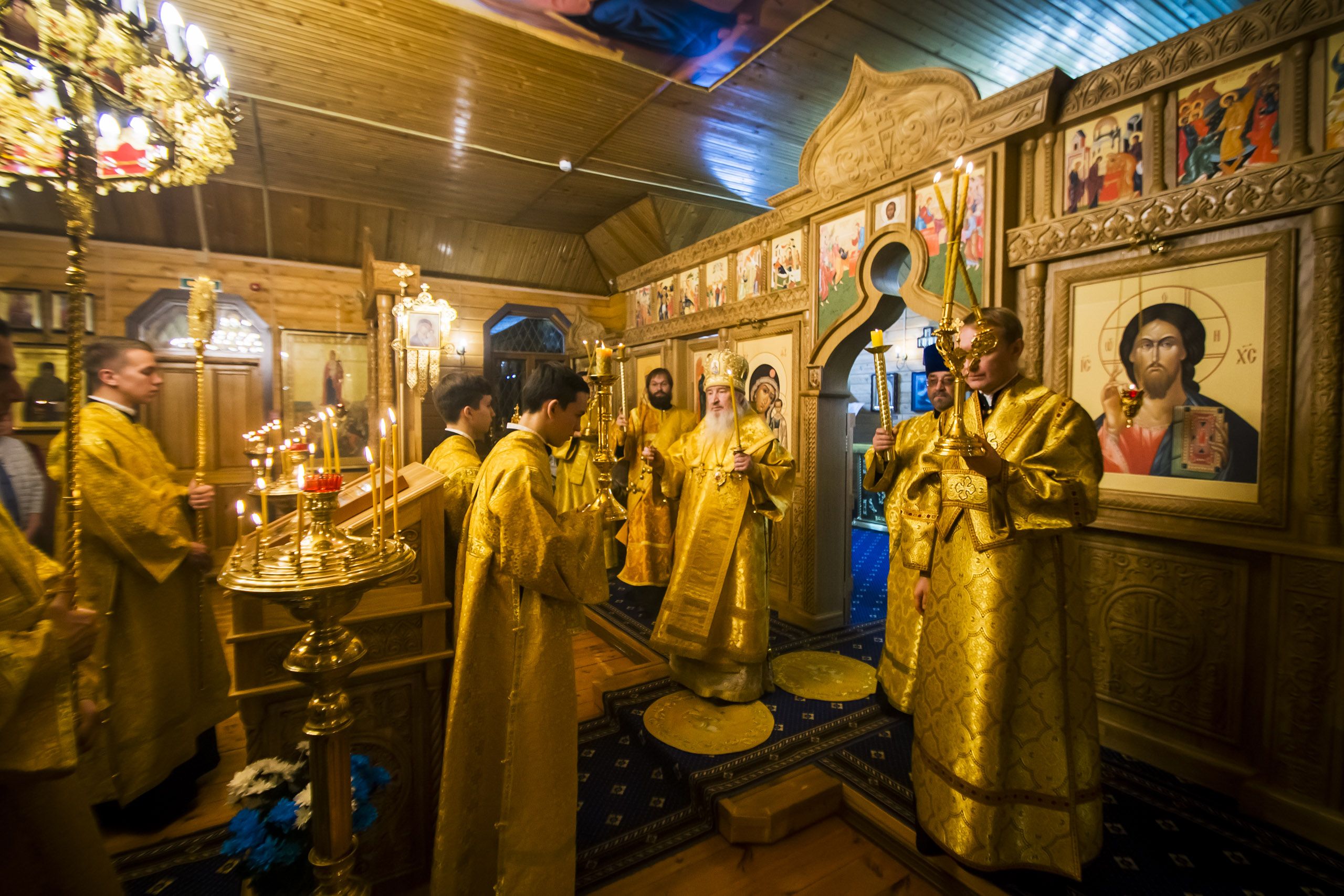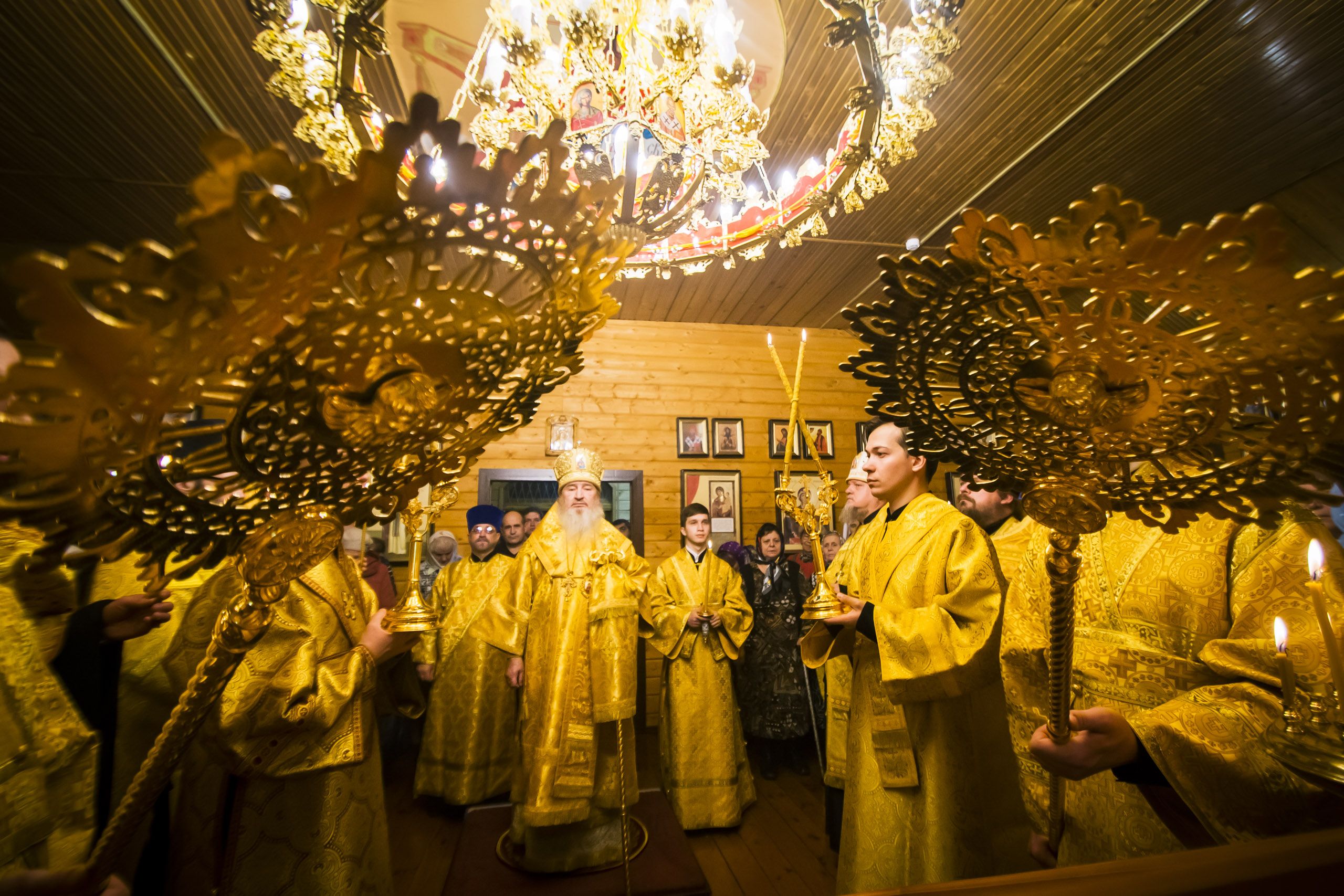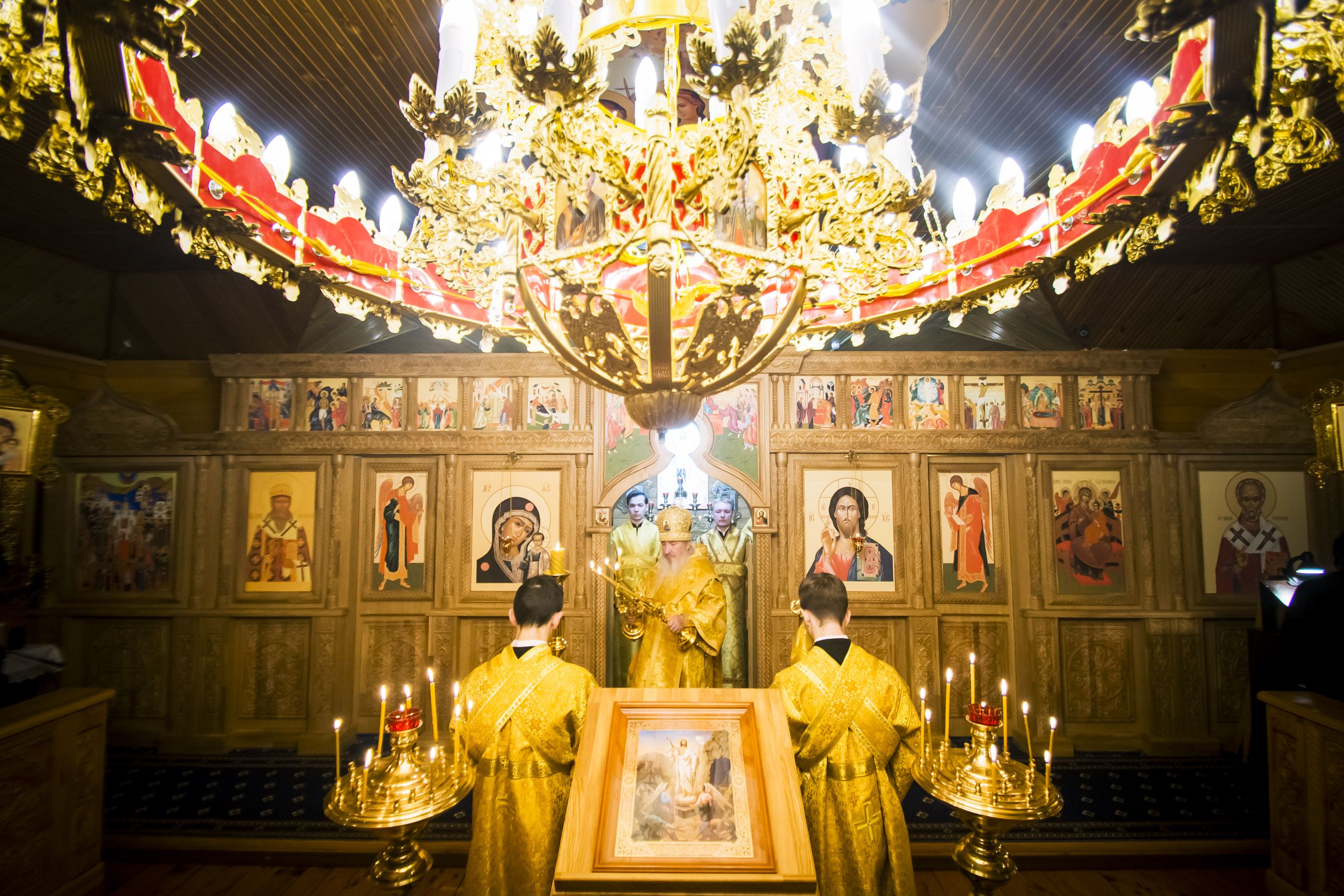 Песнопения исполнил мужской хор под управлением Дениса Рогова.