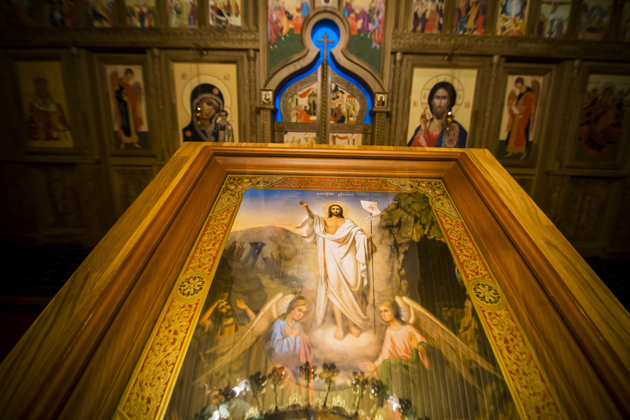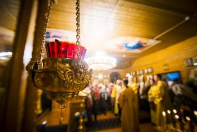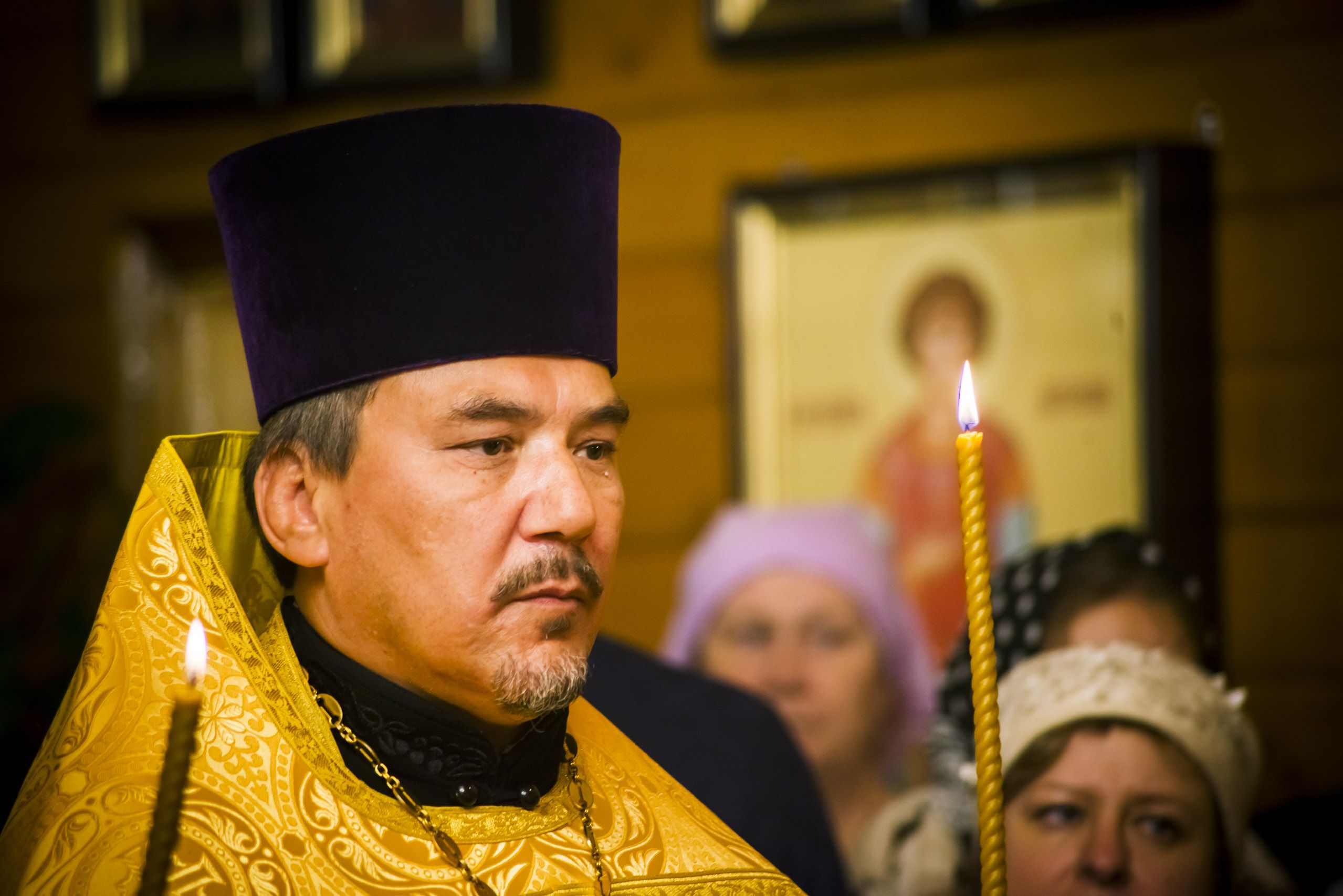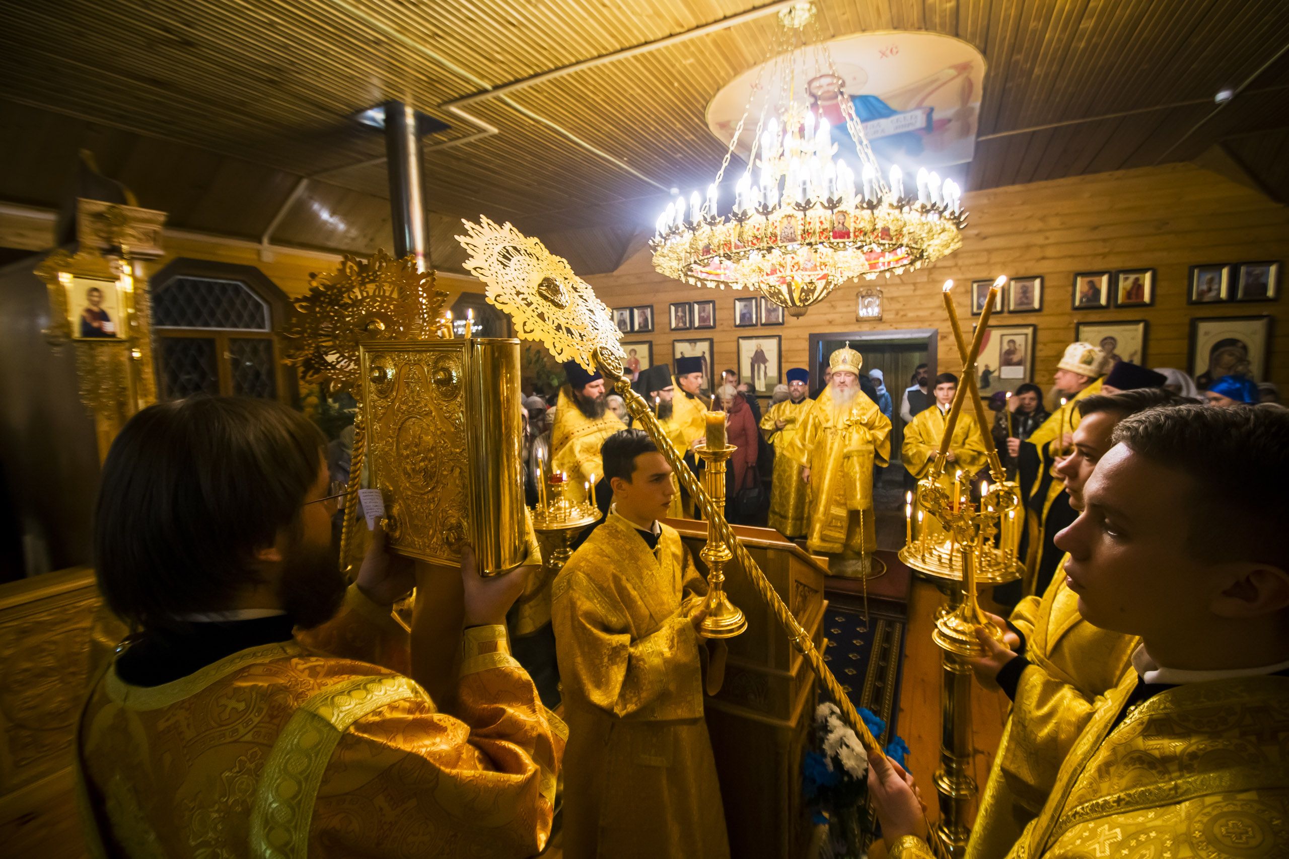 Песнопения исполнил мужской хор под управлением Дениса Рогова.