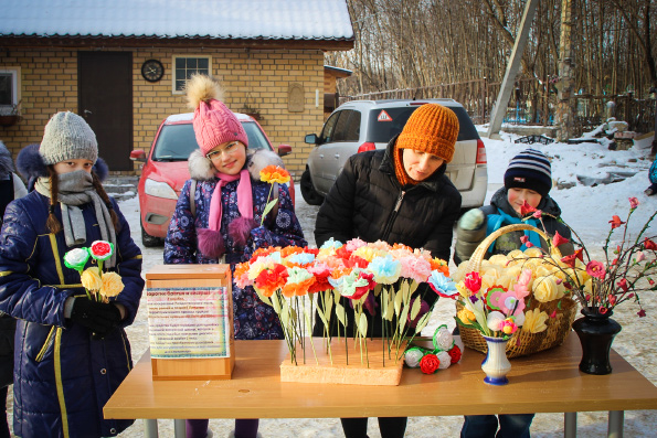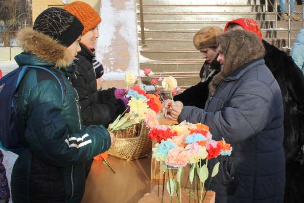 По благословению настоятеля храма протоиерея Александра Павлова в ней приняли участие ученики приходской воскресной школы «Лествица», их родители, педагоги и прихожане. Дети и взрослые предлагали всем желающим приобрести изготовленные своими руками белые цветы, сделав посильное пожертвование.