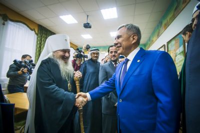 Глава Татарстанской митрополии в свою очередь также поздравил студентов, сотрудников и выпускников исламского института с памятной датой. Архипастырь отметил тесное сотрудничество Казанской духовной семинарии с РИИ.
