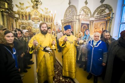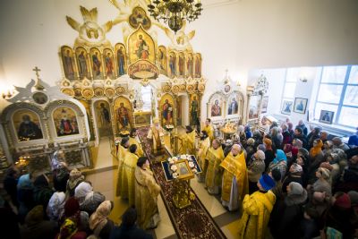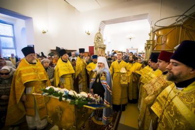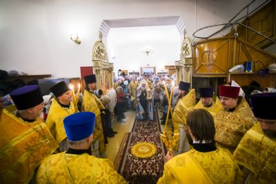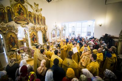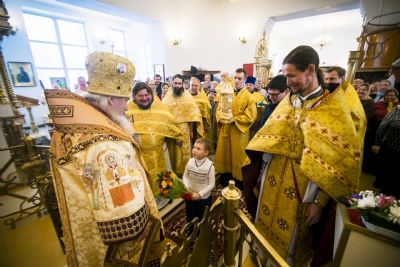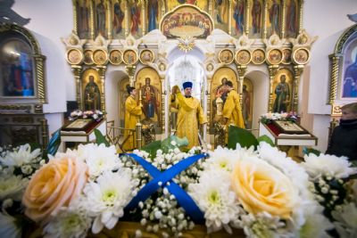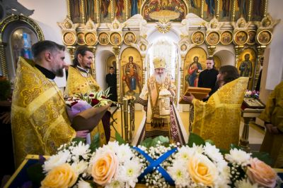 По окончании Литургии владыка Феофан поздравил духовенство и мирян с престольным праздником. Его Высокопреосвященство выразил радость в связи с благоустройством храма и пожелал, чтобы в будущем на приходе были организованы народный и детский хоры.