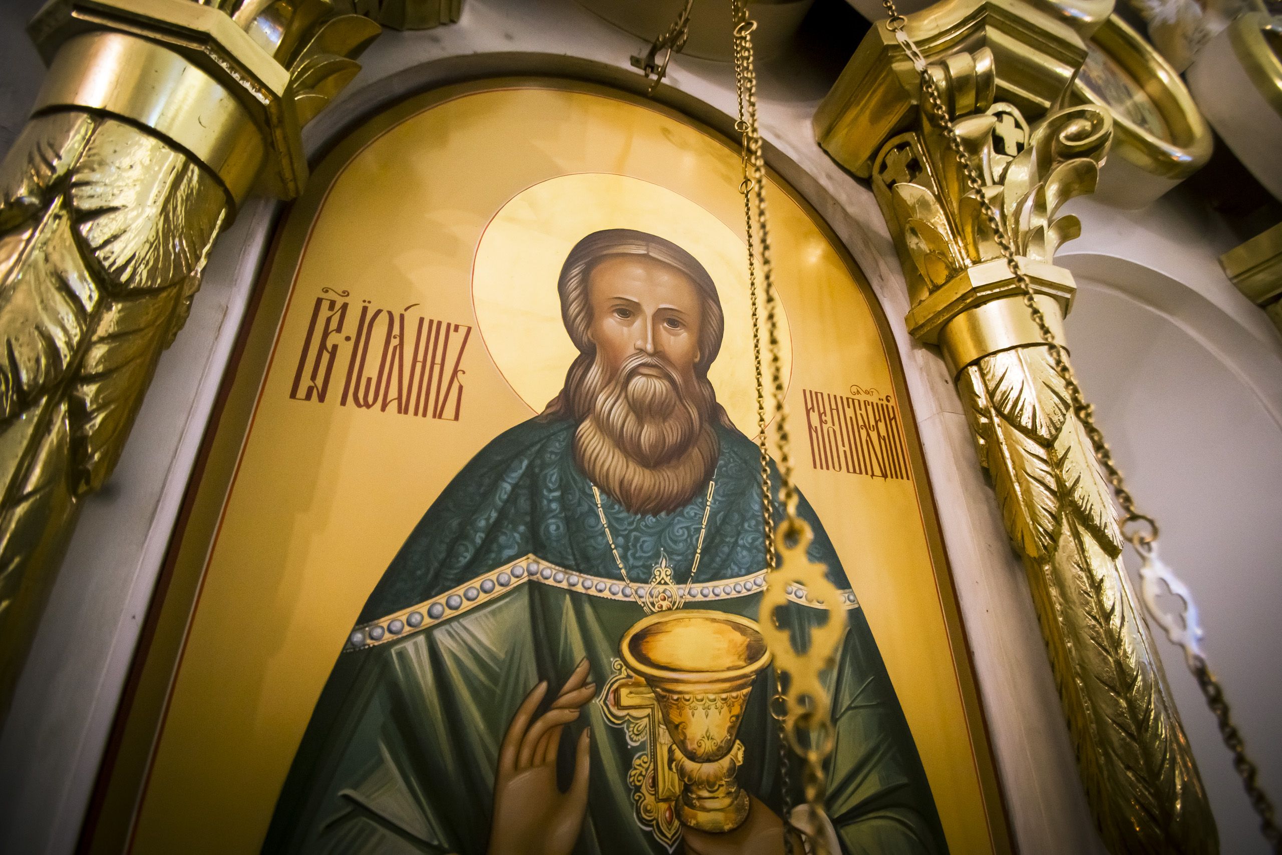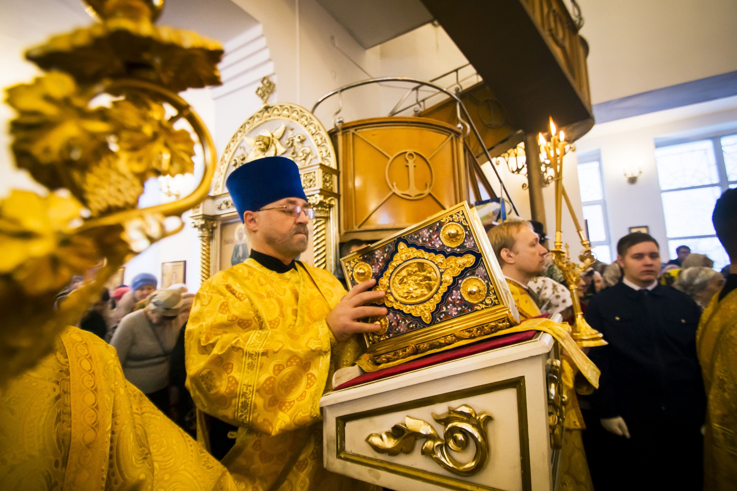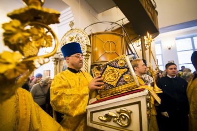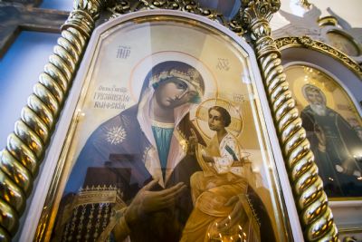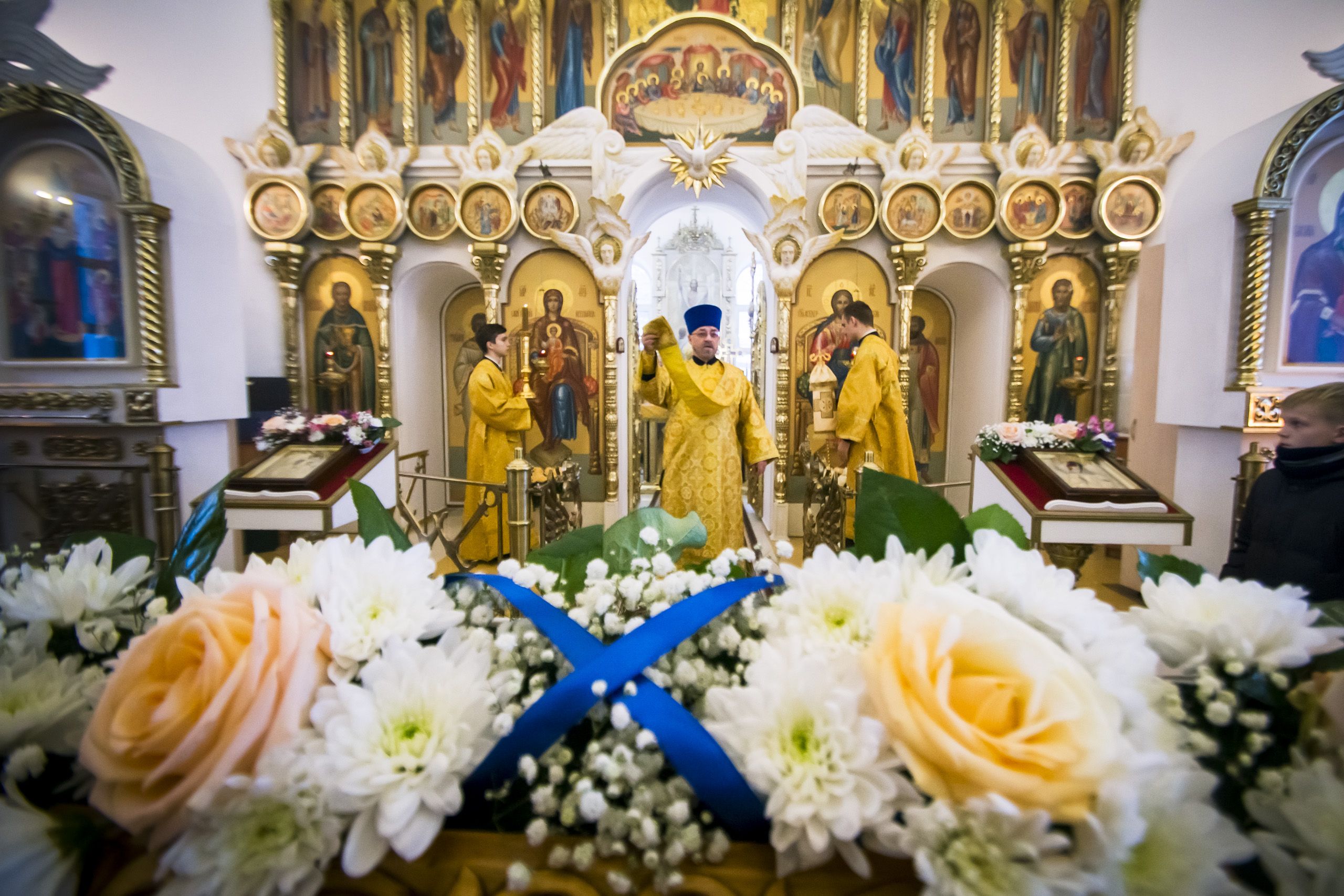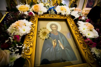 После заамвонной молитвы перед храмовой иконой духовенство пропело славление святому покровителю храма.