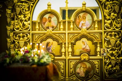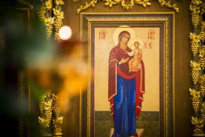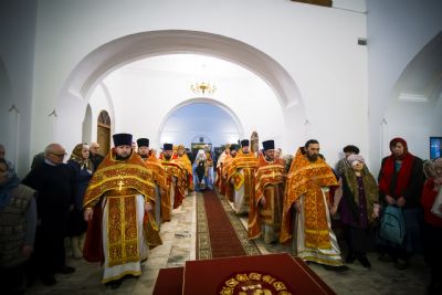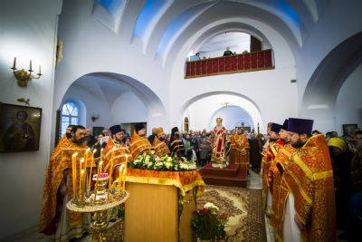 После заамвонной молитвы духовенство пропело славление святой покровительнице храма.