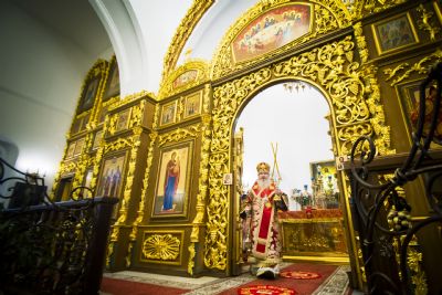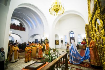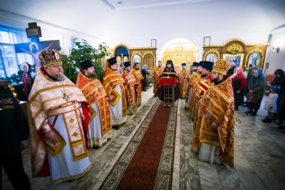 После чтения евангельского зачала правящий архиерей обратился к прихожанам с проповедью, посвященной земной жизни святой Варвары.