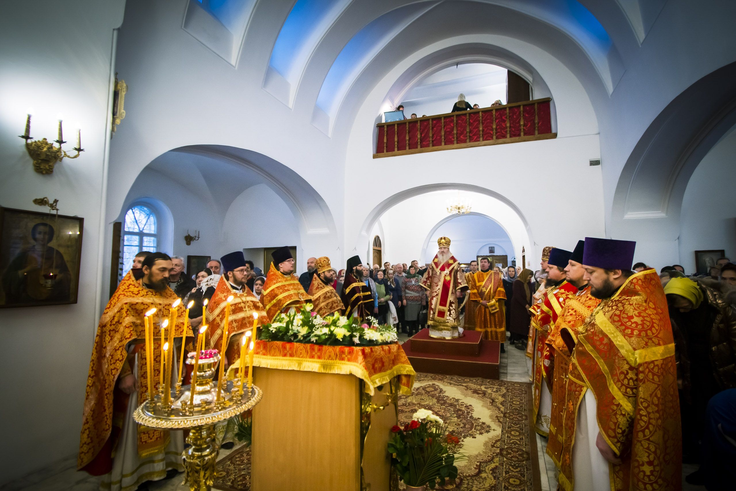 Богослужебные песнопения исполнил смешанный хор Варваринского прихода под управлением Александры Маминой.