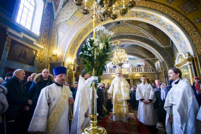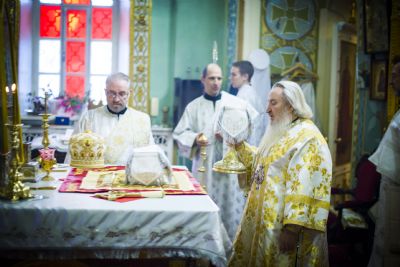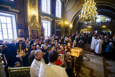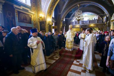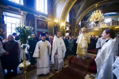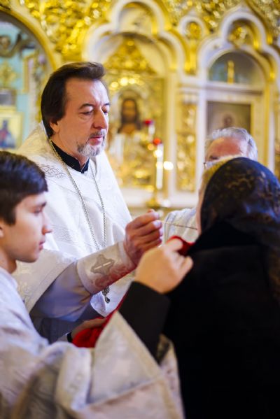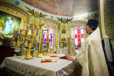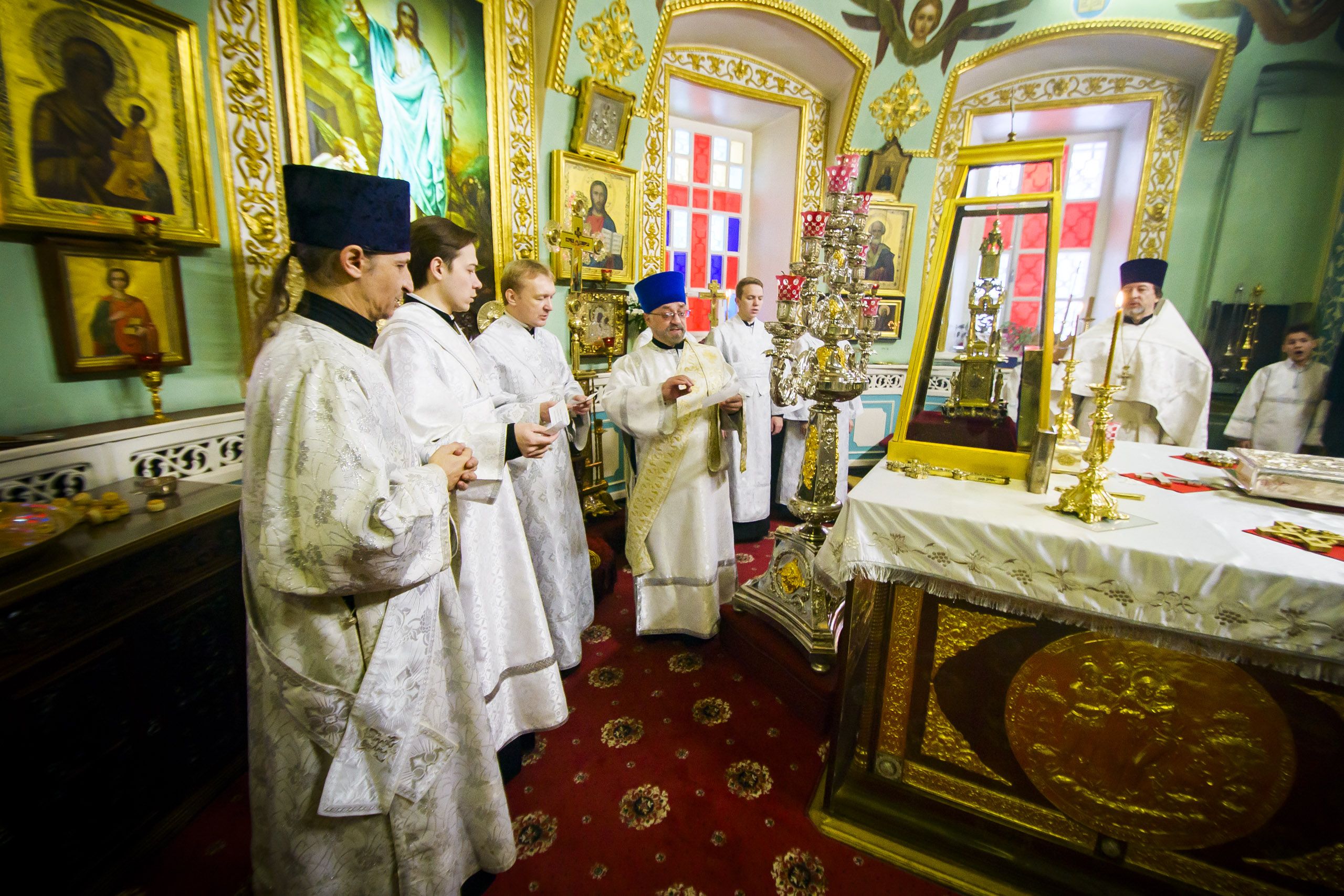 За богослужением пел смешанный хор под управлением Николая Беляева.