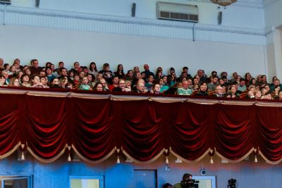 Завершился концерт исполнением всеми его участниками песни «Пусть миром правит любовь» и совместной фотографией собравшихся с митрополитом Феофаном.