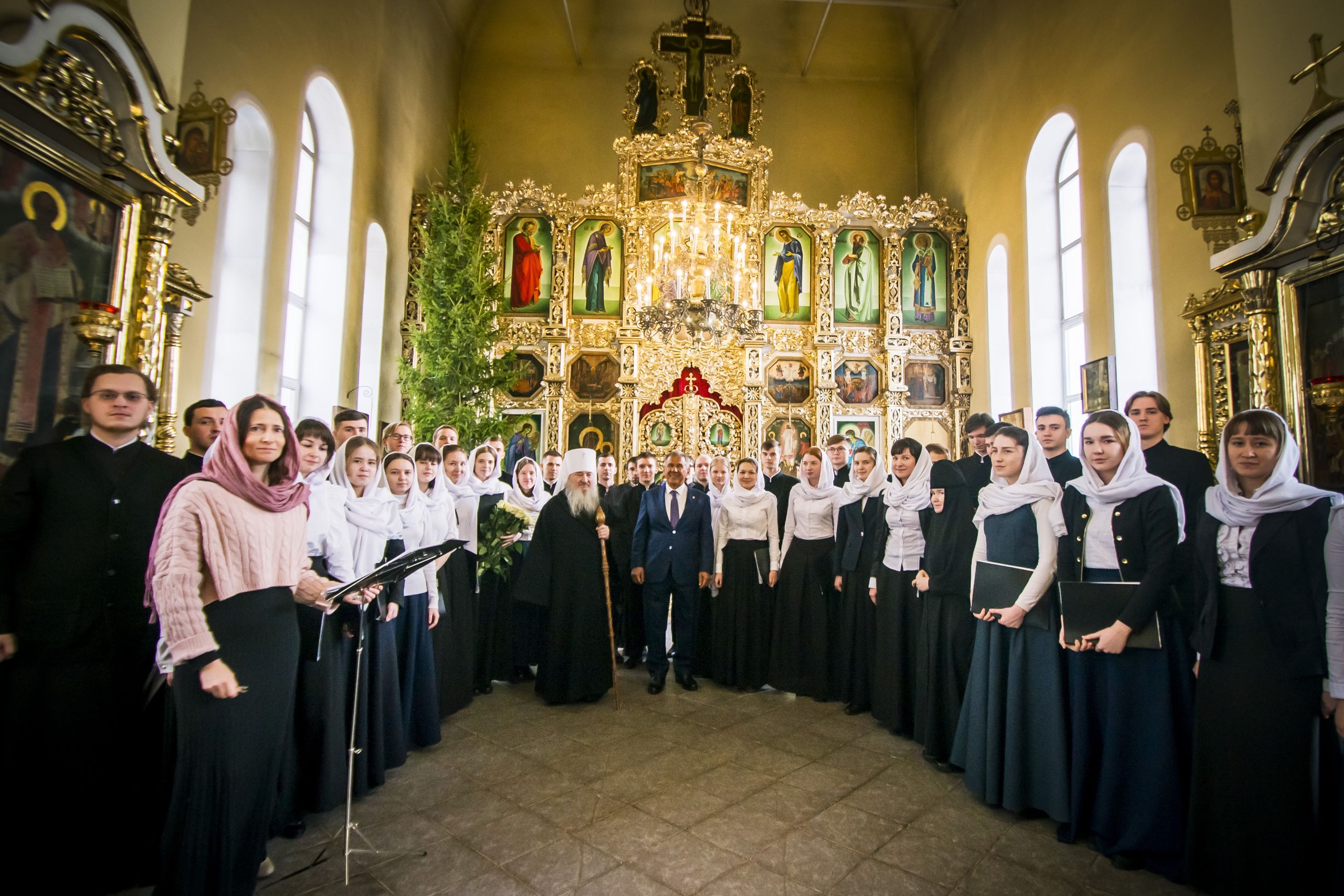 Напомним, что в прошедшем году был завершен капитальный ремонт здания семинарии. Глава республики начал знакомство с обновленным семинарским комплексом с посещения домового храма в честь праведного Иоанна Кронштадтского. Сводный хор семинаристов исполнил для высокого гостя святочную колядку на татарском языке, тропарь и кондак Рождеству и пропел многолетие.