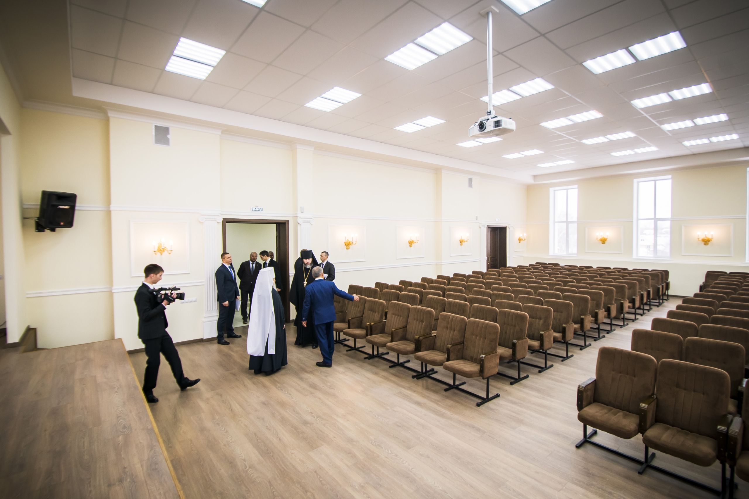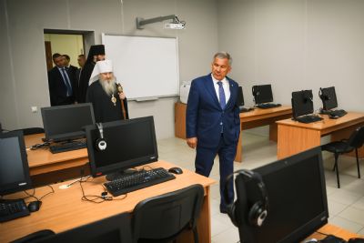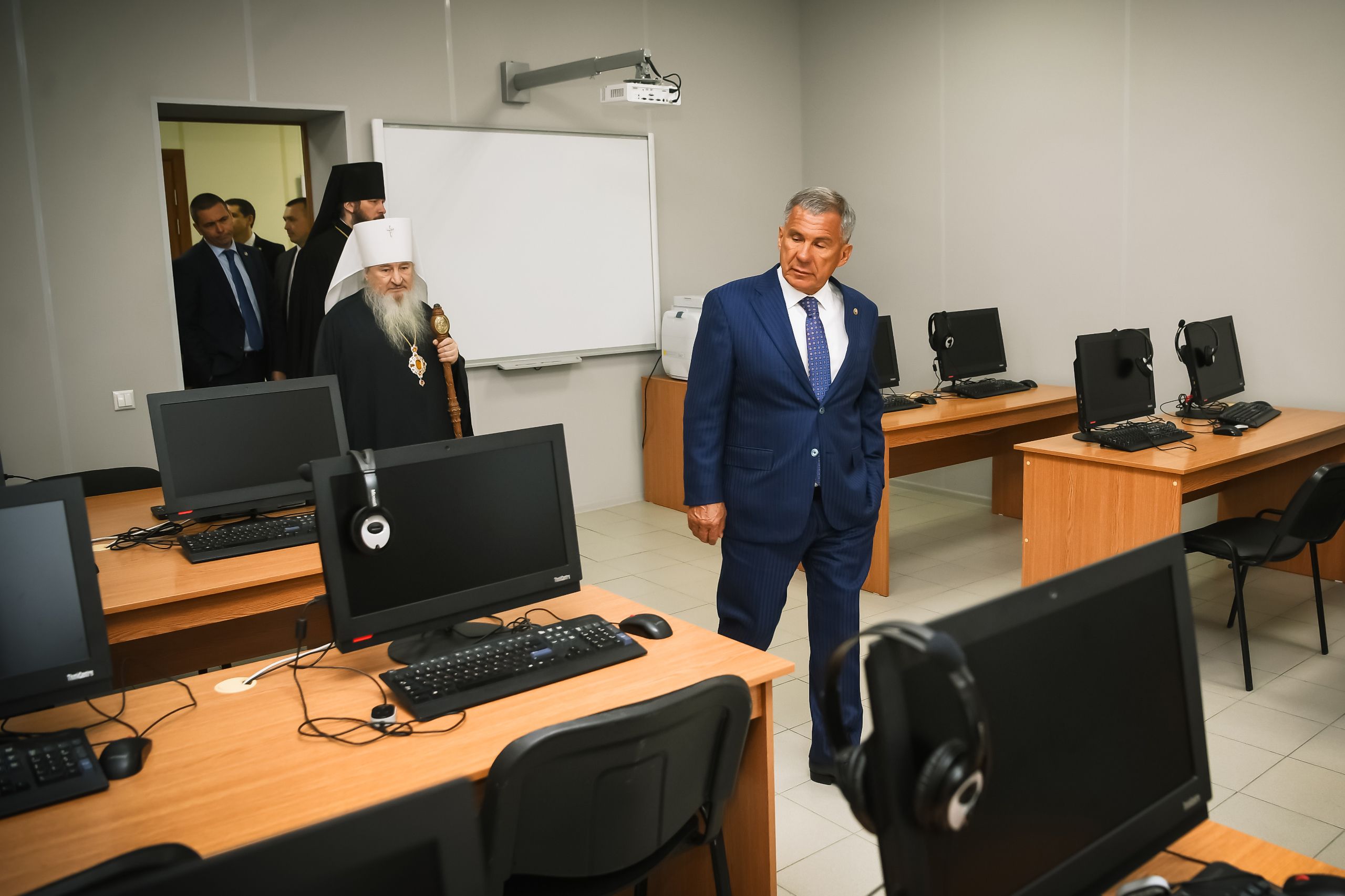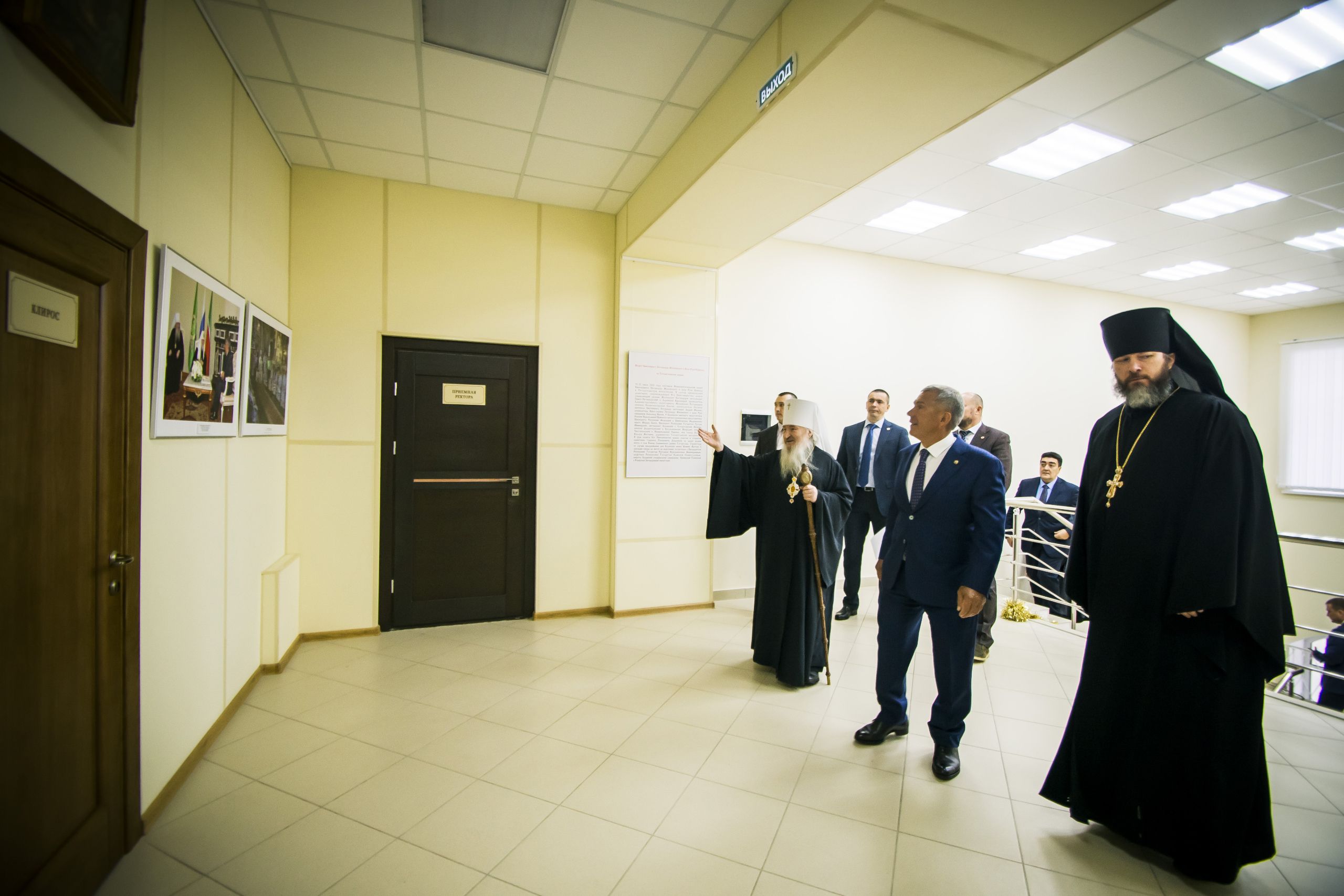 После посещения храма Р.Н. Минниханов осмотрел отреставрированный учебно-административный корпус семинарии, учебные аудитории, компьютерный класс, большой актовый зал, оценил материально-техническое оснащение учебного заведения. Первый проректор семинарии игумен Евфимий (Моисеев) рассказал о проведенных за последний год ремонтных работах и о модернизации семинарского корпуса.