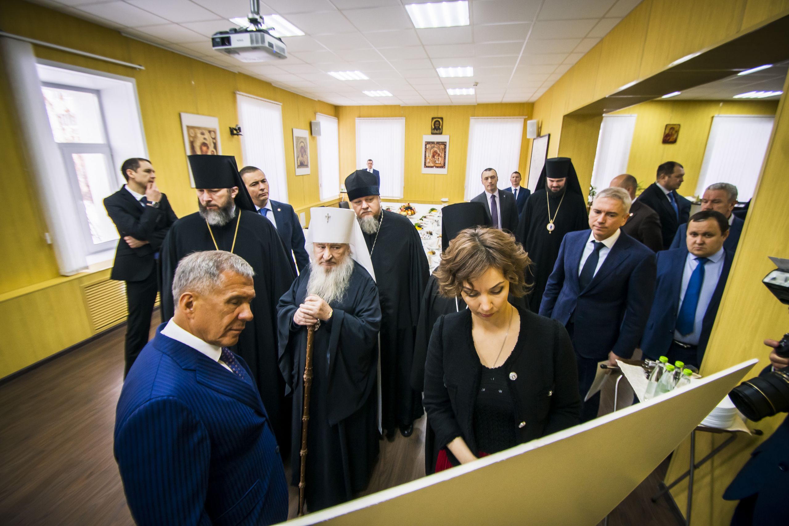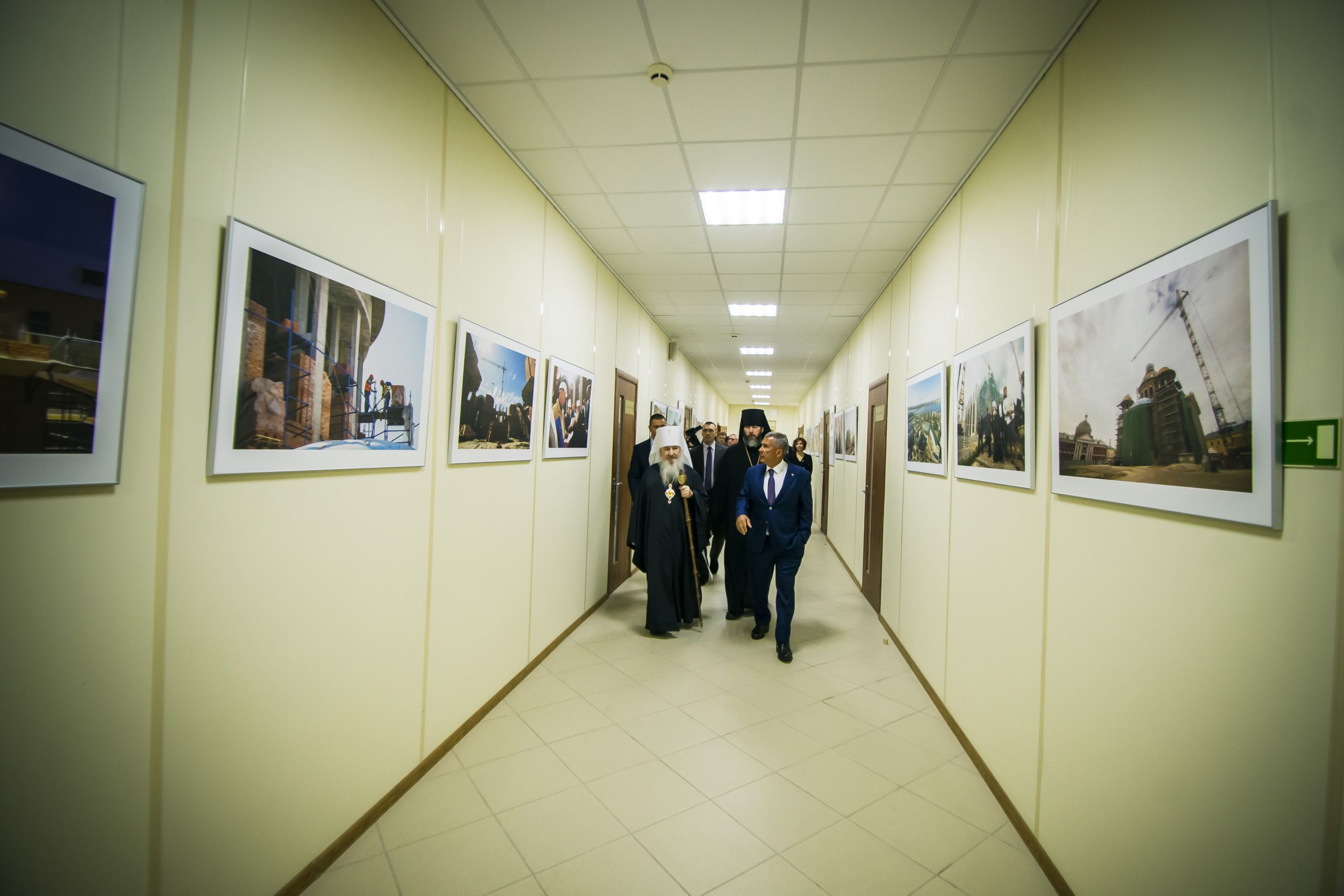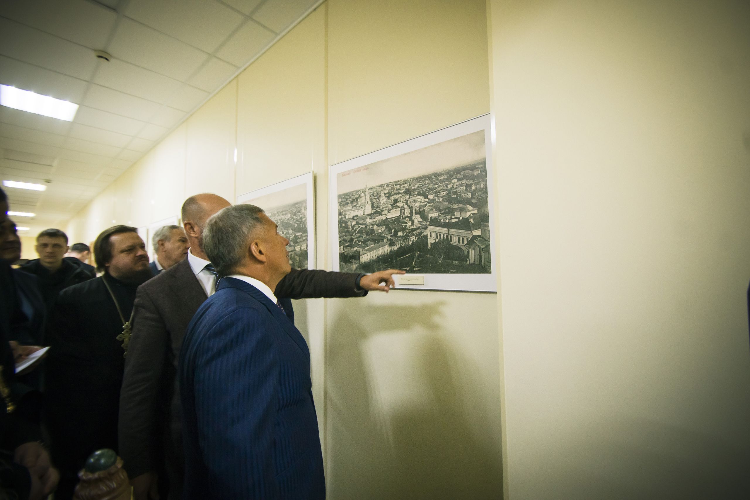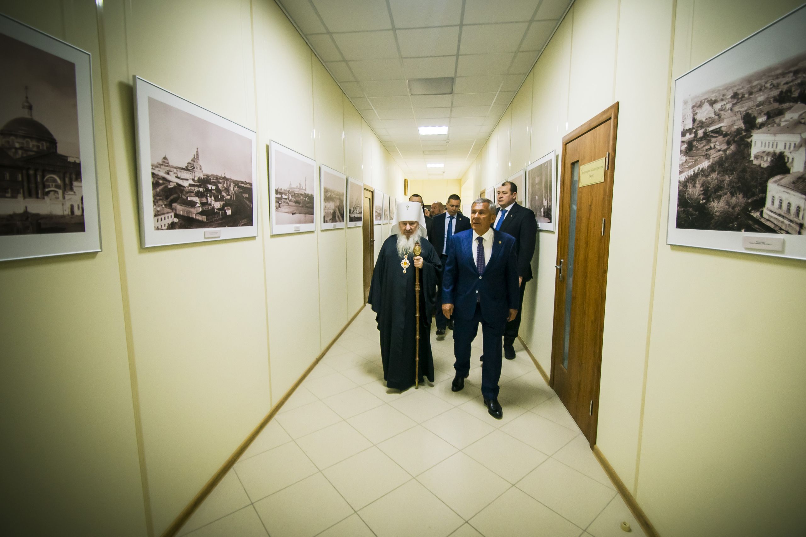 Во время осмотра обновленных помещений семинарии Рустам Нургалиевич познакомился с фотовыставкой, посвященной истории Казанского Богородицкого монастыря и воссозданию собора Казанской иконы Божией Матери. В экспозиции представлены старинные фотографии монастыря конца XIX — начала XX веков; исторические документы начала ХХ века, имеющие отношение к монастырю и Казанскому образу Богородицы; фотографии, сделанные в день принесения в Казань «ватиканского» списка Казанской иконы Божией Матери; фотохронология воссоздания Казанского собора, которое происходит по указу действующего Президента Татарстана.
