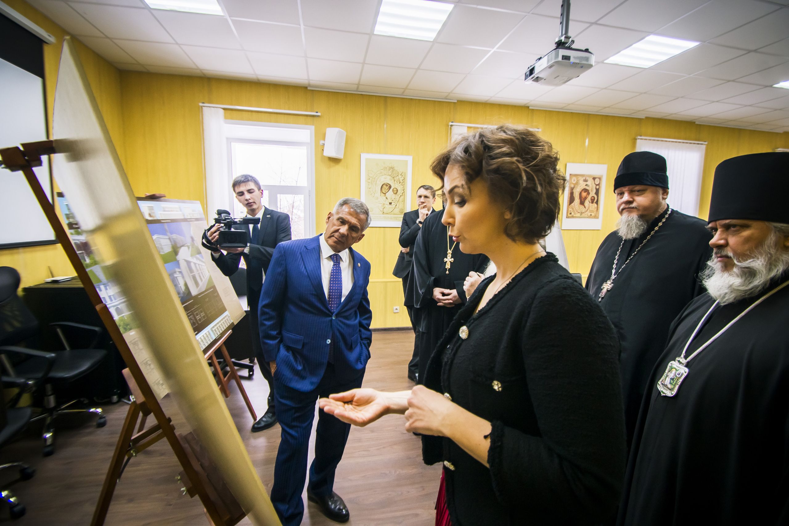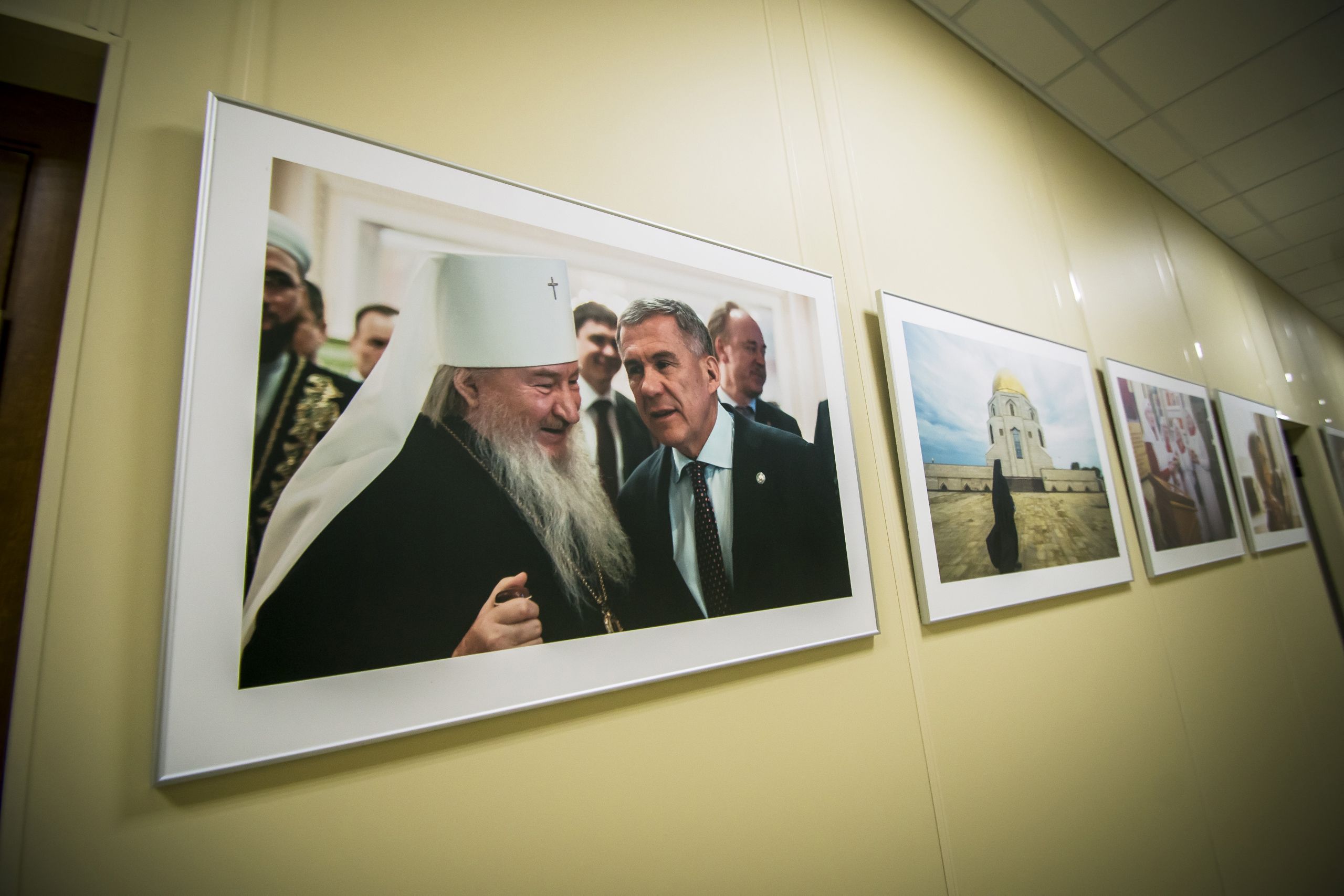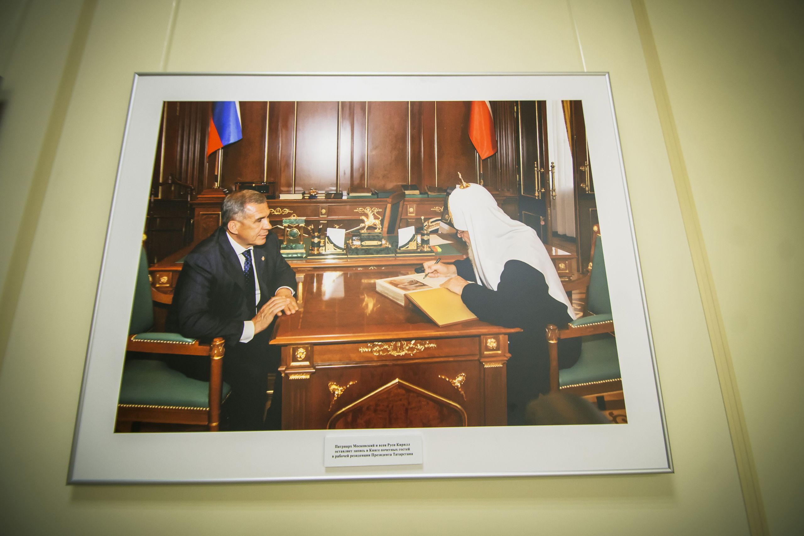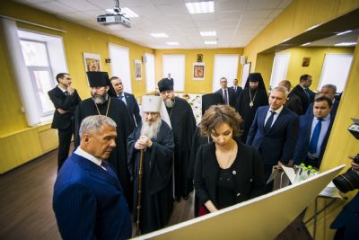 Во время осмотра обновленных помещений семинарии Рустам Нургалиевич познакомился с фотовыставкой, посвященной истории Казанского Богородицкого монастыря и воссозданию собора Казанской иконы Божией Матери. В экспозиции представлены старинные фотографии монастыря конца XIX — начала XX веков; исторические документы начала ХХ века, имеющие отношение к монастырю и Казанскому образу Богородицы; фотографии, сделанные в день принесения в Казань «ватиканского» списка Казанской иконы Божией Матери; фотохронология воссоздания Казанского собора, которое происходит по указу действующего Президента Татарстана.