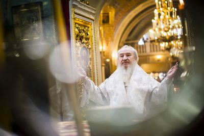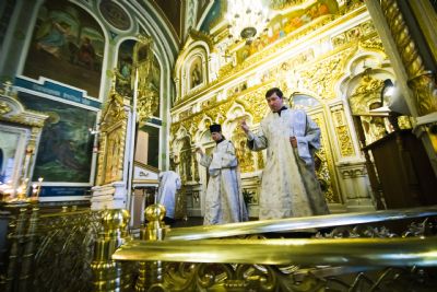 Перед вечерней архипастырь возглавил уставное чтение царских часов и изобразительных.