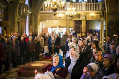 Богослужебные песнопения исполнялись смешанным хором под управлением Николая Беляева.