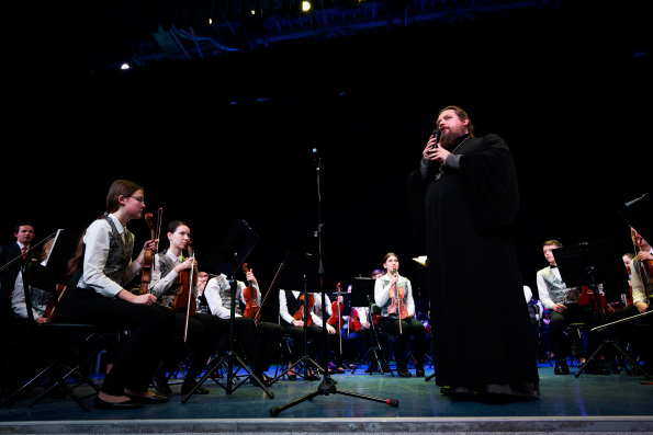 «Руководство этого зала, лично Аркадий Леонидович Карбаев, предложил нам побывать на таком замечательном концерте. Мы с радостью узнали, что в этом зале буквально живет такой оркестр, как ваш. Дорогие ребята! Мне хочется поблагодарить вас от всей души за труд, за время. Я сам в детстве играл на кларнете в духовом оркестре, и сейчас вспомнил, что Иоганн Себастьян Бах свои произведения подписывал: “Посвящаю Господу Богу”. Хочу пожелать, чтобы через красоту музыки, которая проникает в душу, вы постигали, что вы слушаете и играете, и что от этого зависит, кем вы будете, каким мировоззрением будете обладать. Желаю, чтобы через красоту музыки вы постигли Того, для Кого писал Бах», — сказал настоятель Духосошественского храма.