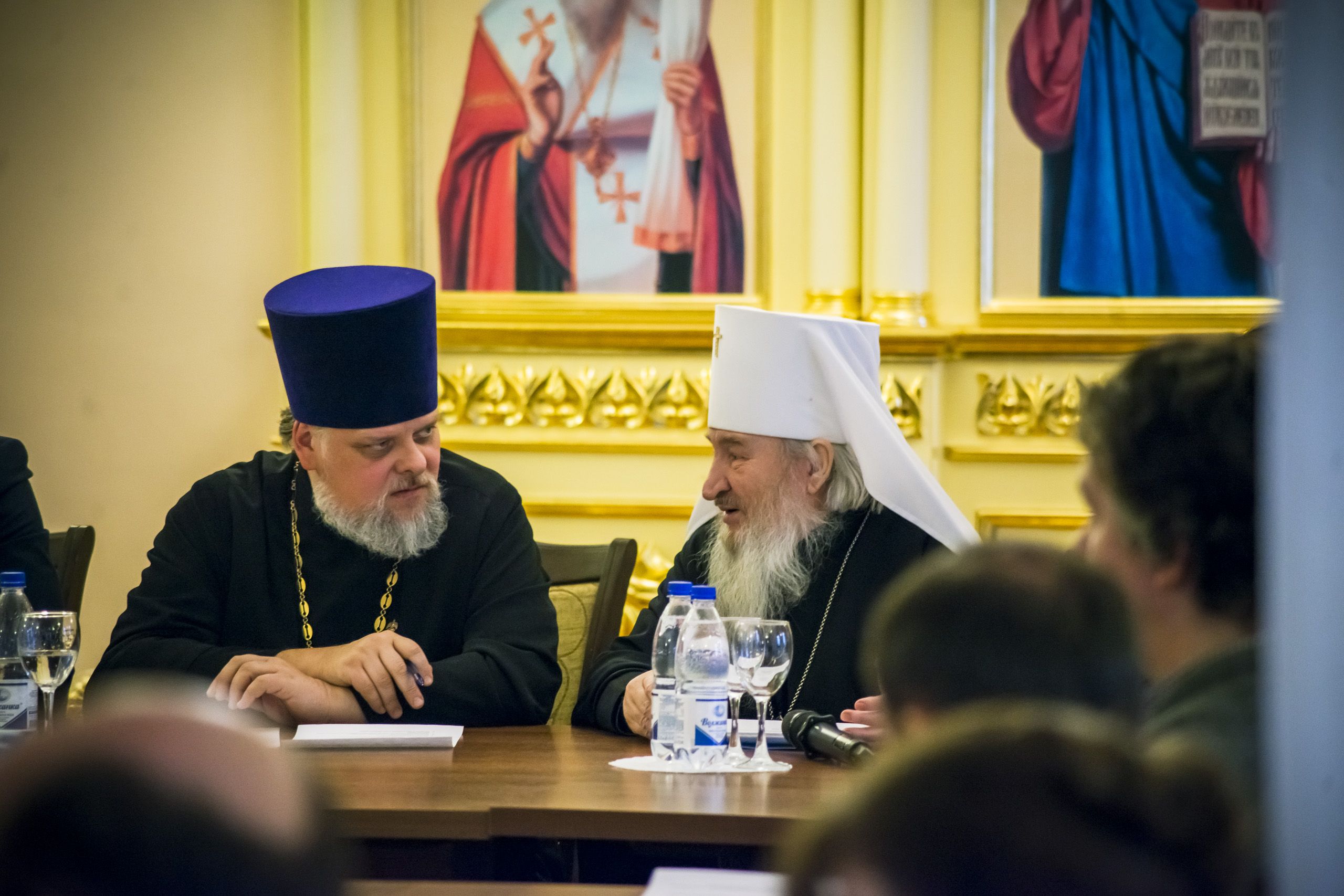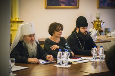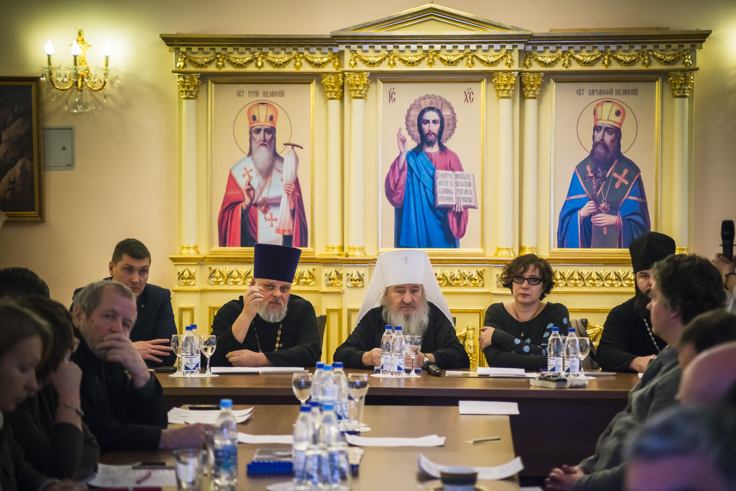 Рабочую встречу возглавили митрополит Казанский и Татарстанский Феофан и председатель Экспертного совета протоиерей Леонид Калинин.