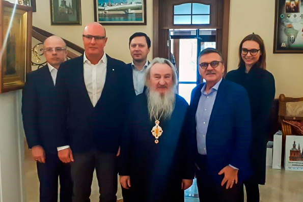 В ходе общения архипастырь ознакомил гостей с основными направлениями деятельности Татарстанской митрополии, рассказал о духовном образовании, социальном служении, работе с молодежью. Владыка Феофан подчеркнул: одним из наиболее действенных и популярных инструментов в налаживании отношений между молодыми людьми различных вероисповеданий являются совместные спортивные мероприятия. В рамках молодежных турниров команды формируются по смешанному принципу и включают в себя как мусульман, так и православных.