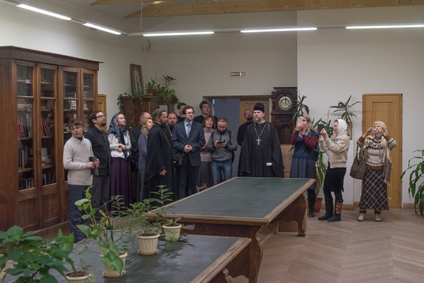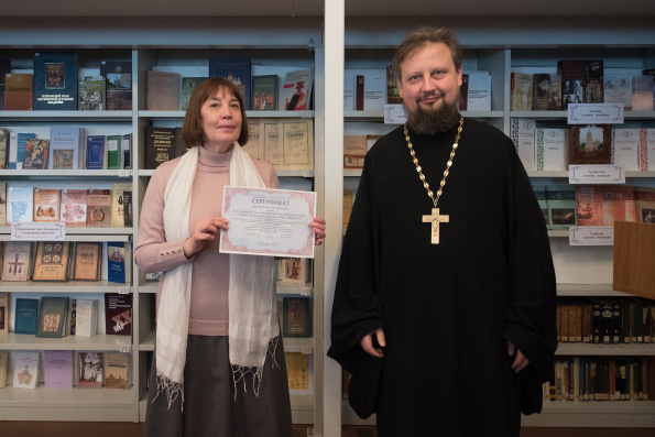 По завершении круглого стола участникам выставки вручили сертификаты Учебного комитета Русской Православной Церкви. После этого состоялась экскурсия по библиотеке и Церковно-археологическому кабинету Московской духовной академии.