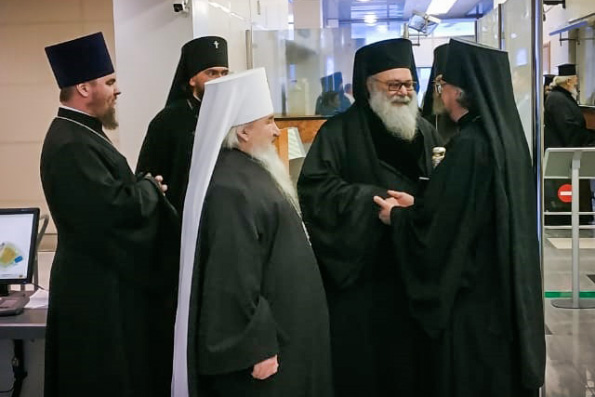 В столичном аэропорту «Внуково-3» Блаженнейшего Патриарха Иоанна X встречали представитель Патриарха Антиохийского и всего Востока при Патриархе Московском и всея Руси митрополит Филиппопольский Нифон, митрополит Казанский и Татарстанский Феофан, архиепископ Пятигорский и Черкесский Феофилакт, заведующий сектором протокола ОВЦС игумен Феофан (Лукьянов).