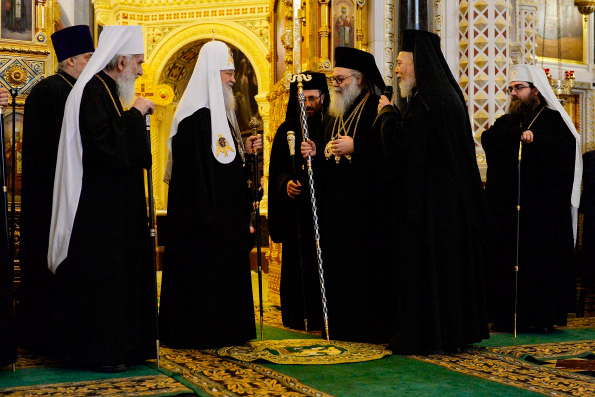 Богослужение возглавили: Блаженнейший Патриарх Антиохийский и всего Востока Иоанн X, Святейший Патриарх Московский и всея Руси Кирилл, Святейший Патриарх Сербский Ириней, Блаженнейший Митрополит Чешских земель и Словакии Ростислав, Блаженнейший Митрополит всей Америки и Канады Тихон.