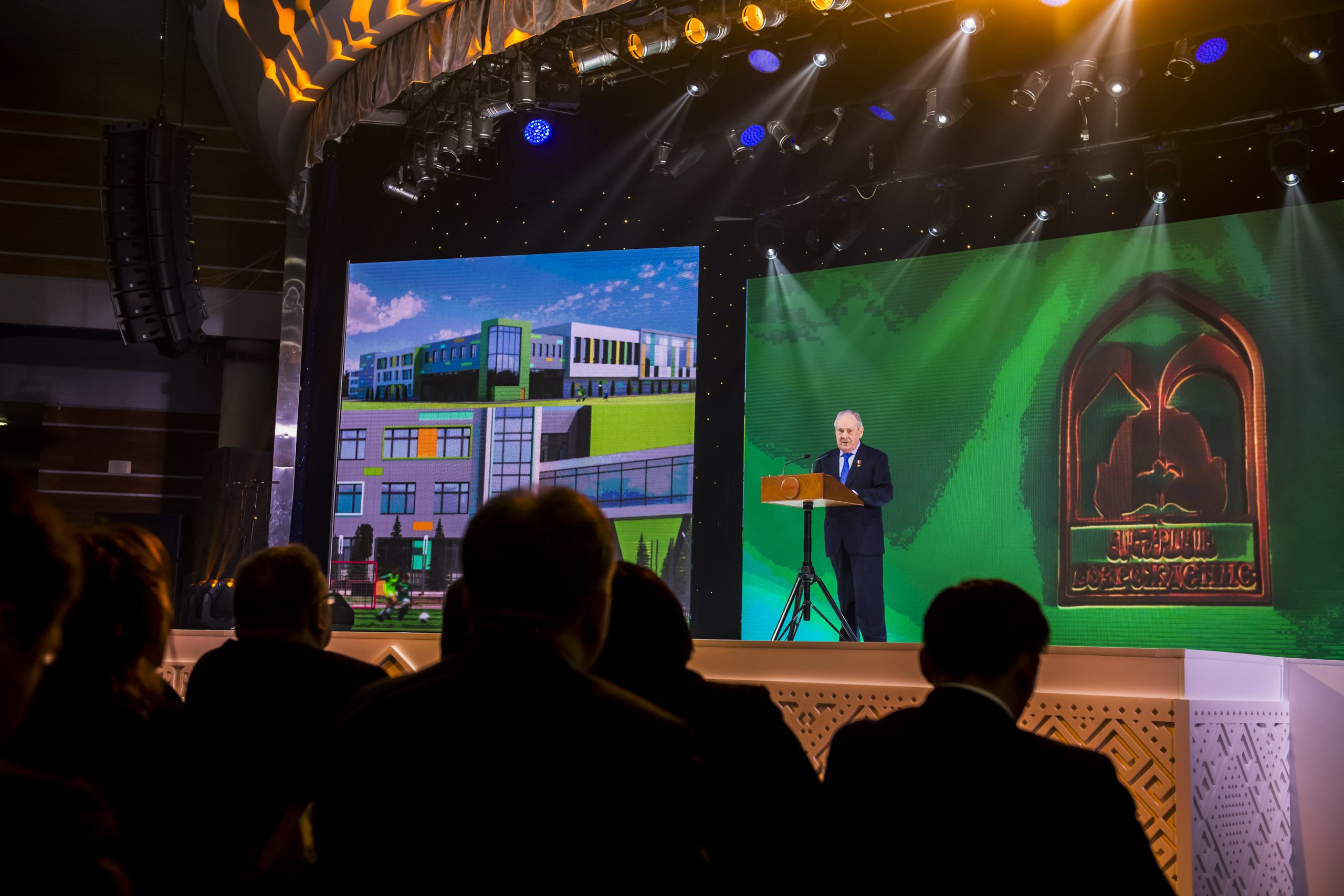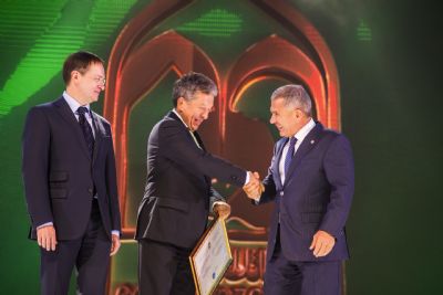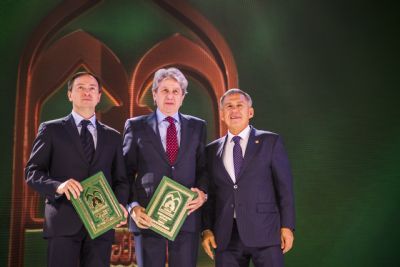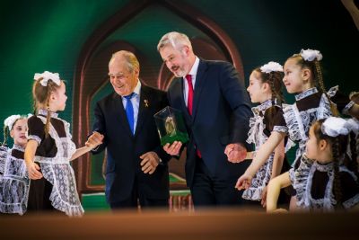 Затем слово было предоставлено руководителю фонда «Возрождение» Минтимеру Шаймиеву. Он отметил, что за девять лет удалось не только восстановить архитектурные ансамбли и исторические памятники, создать современную инфраструктуру и благоустроить территории поселений, но и возродить традиции и культуру предков. Минтимер Шаймиев отметил, что с 2005 года в республике одновременно восстанавливаются мусульманские и православные святыни. Сначала были воссозданы мечеть Кул-Шариф и Благовещенский собор Казанского кремля. В числе последних проектов — собор Казанской иконы Божией Матери и Болгарская исламская академия.