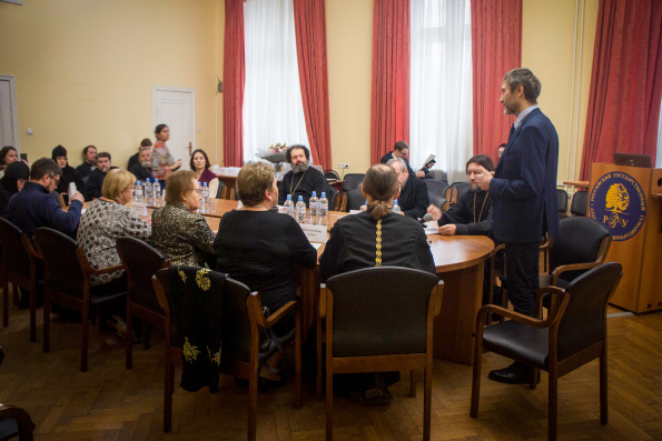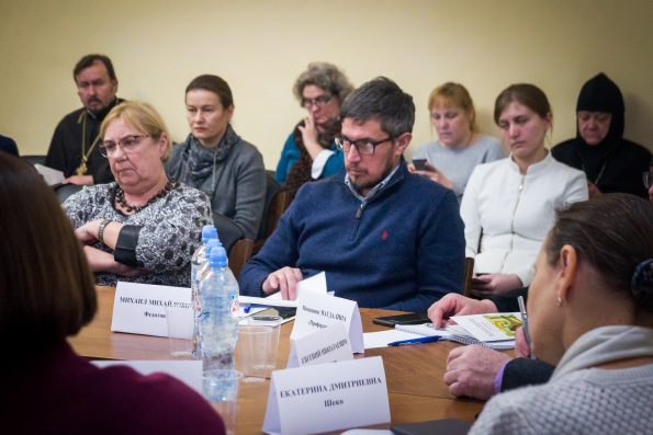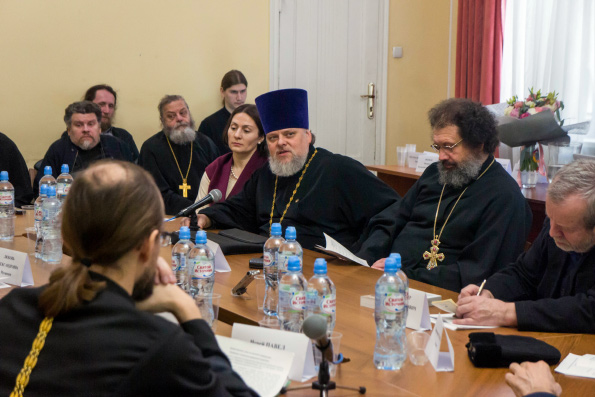 В обсуждении проблем хранения памятников церковного искусства приняли участие председатель Учебного комитета Русской Православной Церкви протоиерей Максим Козлов, председатель Экспертного совета по церковному искусству архитектуре и реставрации протоиерей Леонид Калинин, проректор по культуре Санкт-Петербургской духовной академии Елена Гундяева, проректор по учебной работе Московской духовной академии иерей Павел Лизунов, декан факультета истории искусства РГГУ Владимир Колотаев, специалисты и эксперты в области церковного искусства, представители духовных учебных заведений, реставраторы и искусствоведы из нескольких регионов России.
